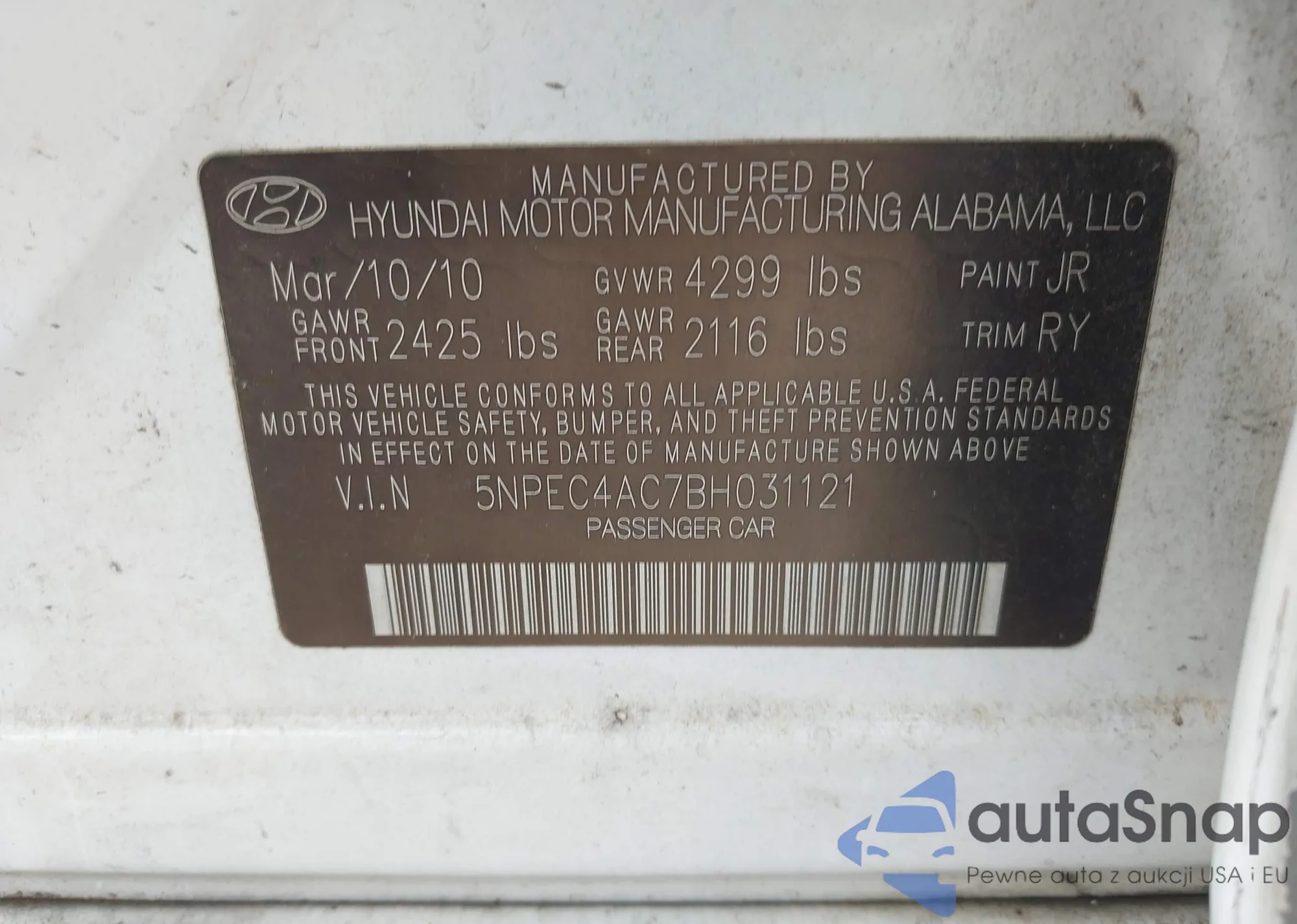 • VIN 5NPEC4AC7BH031121