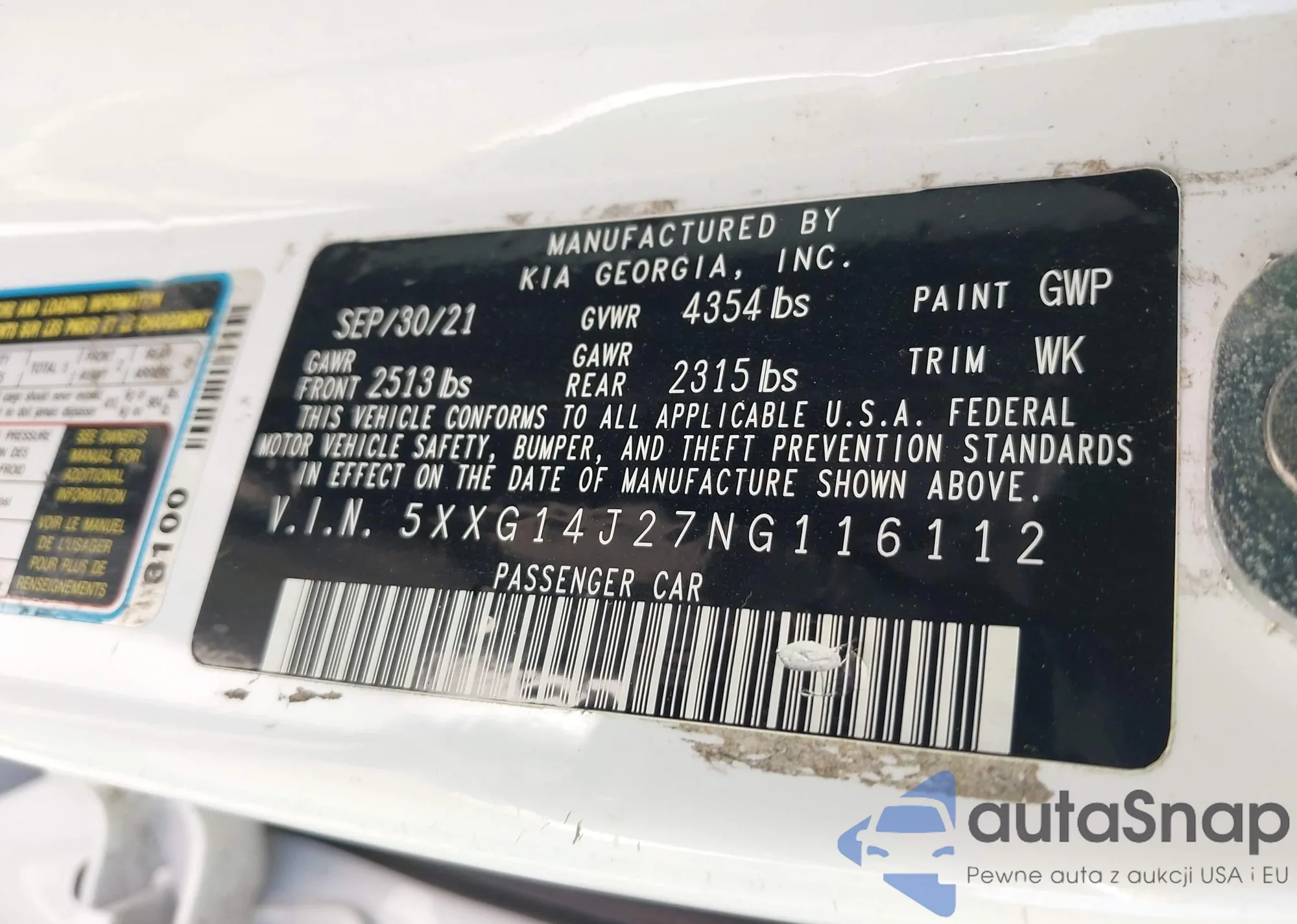 • VIN 5XXG14J27NG116112