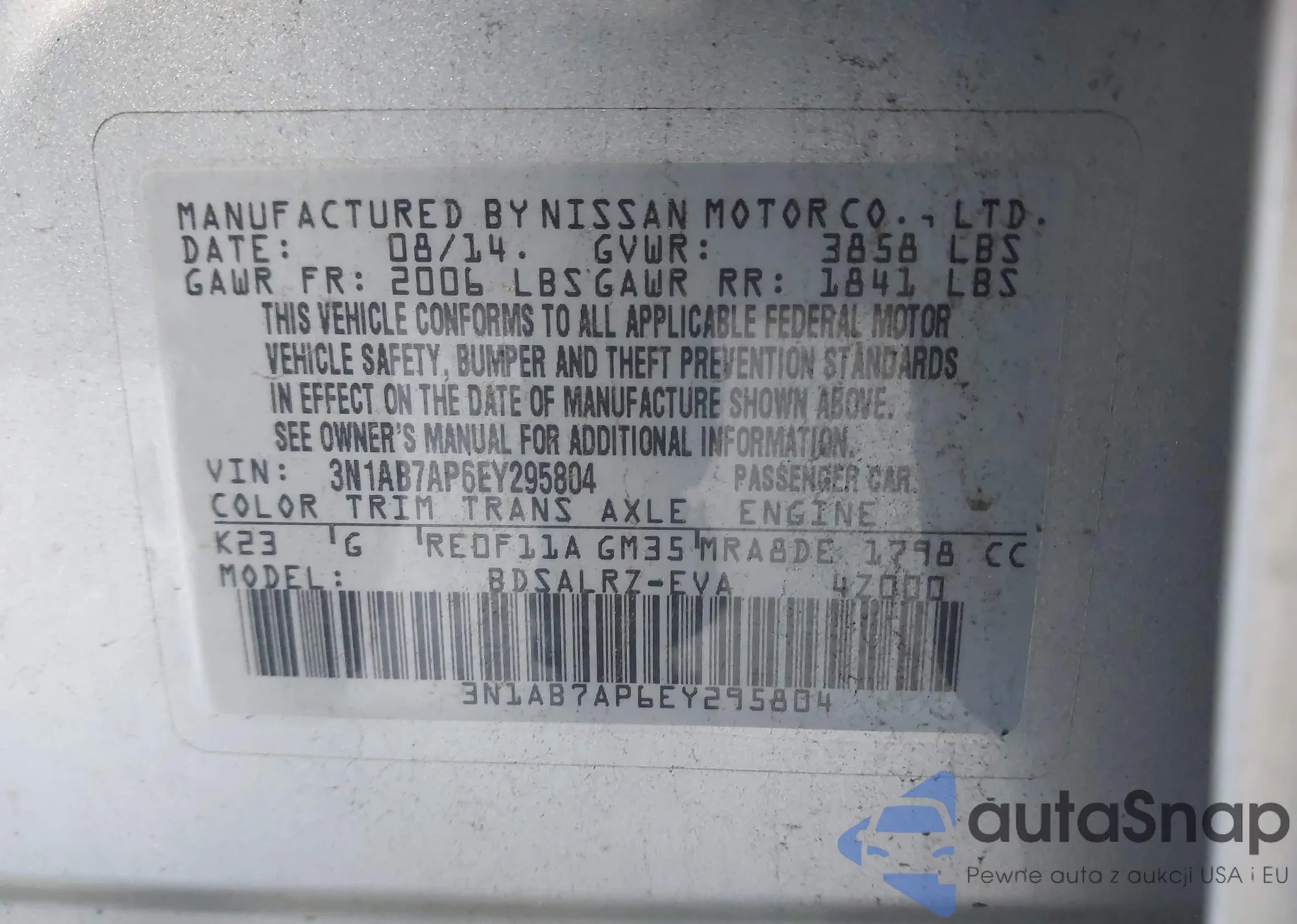 • VIN 5XXGU4L39JG223895