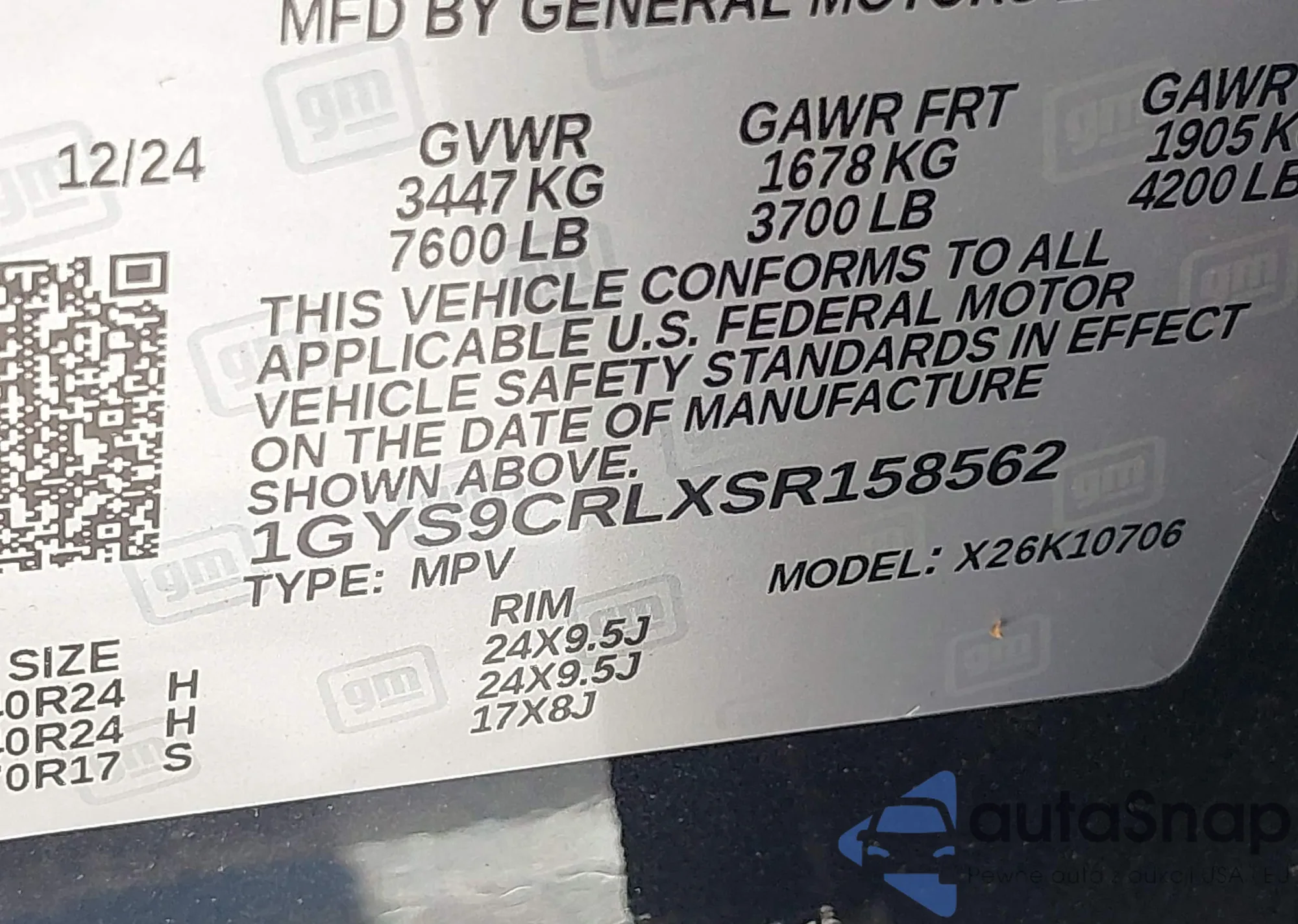 • VIN 1GYS9CRLXSR158562