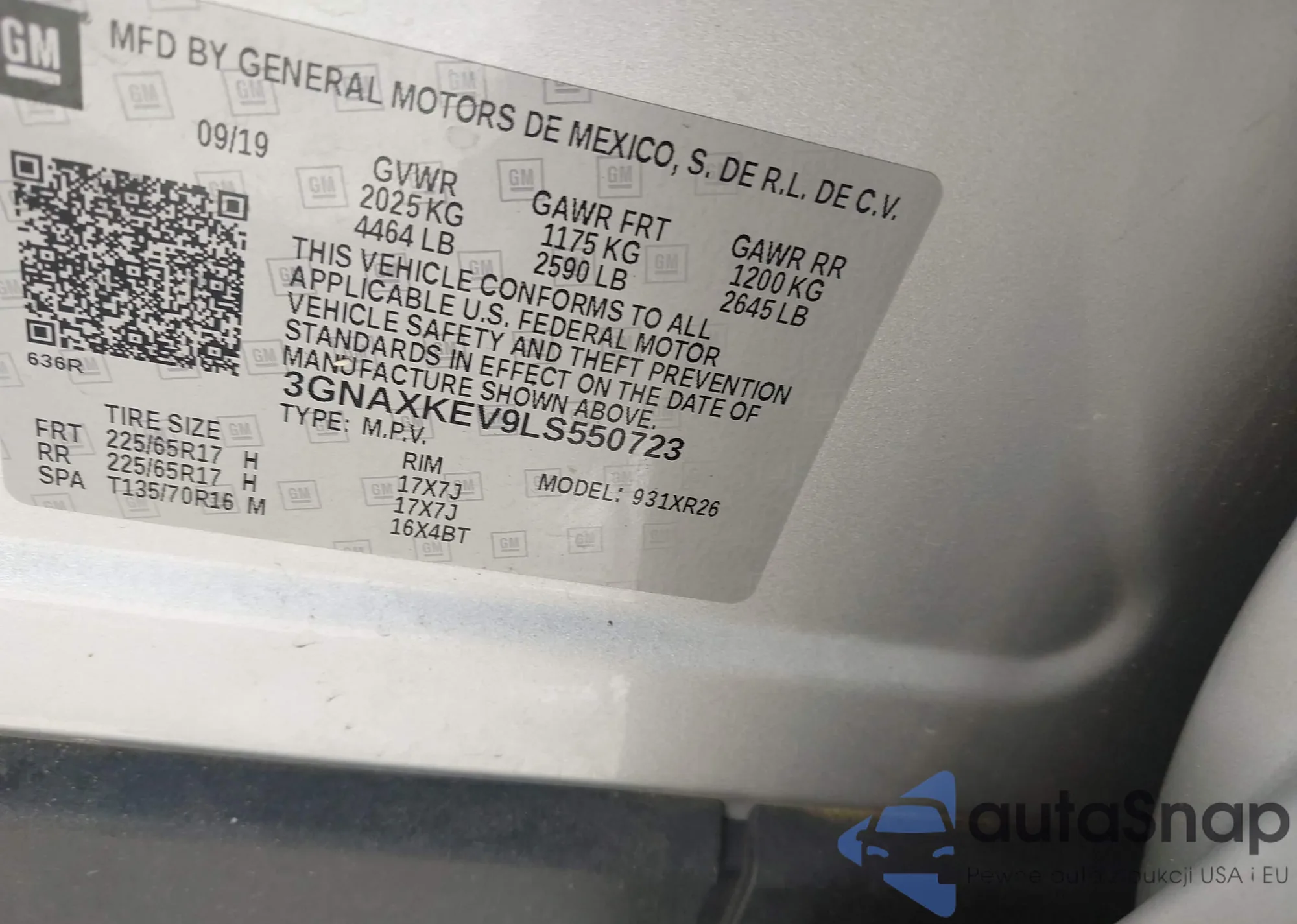 LOT: 43219344 VIN: 3GKALMEVXKL386606