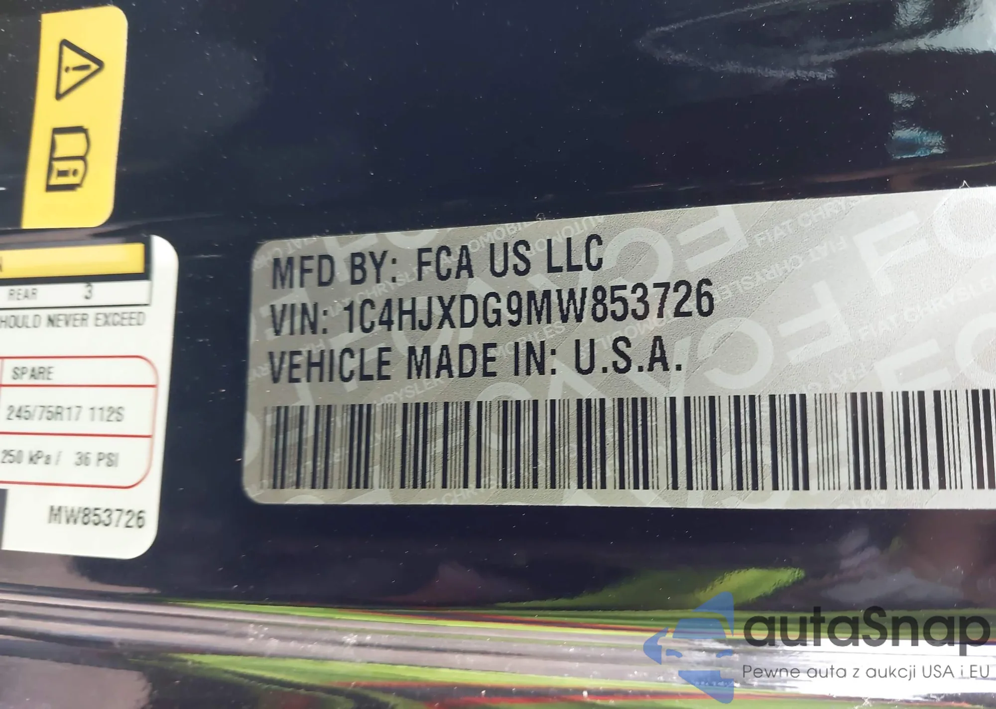 • VIN 1C4HJXDG9MW853726