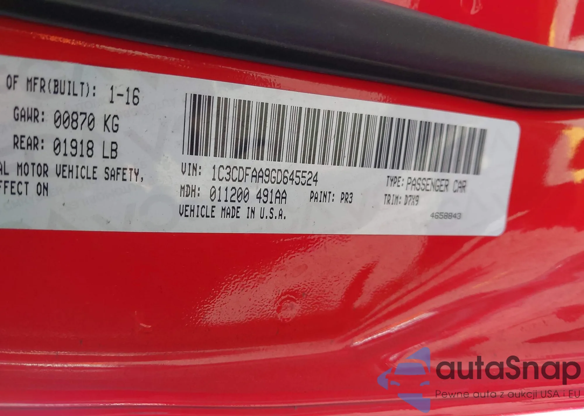 • VIN 1C3CDFAA9GD645524