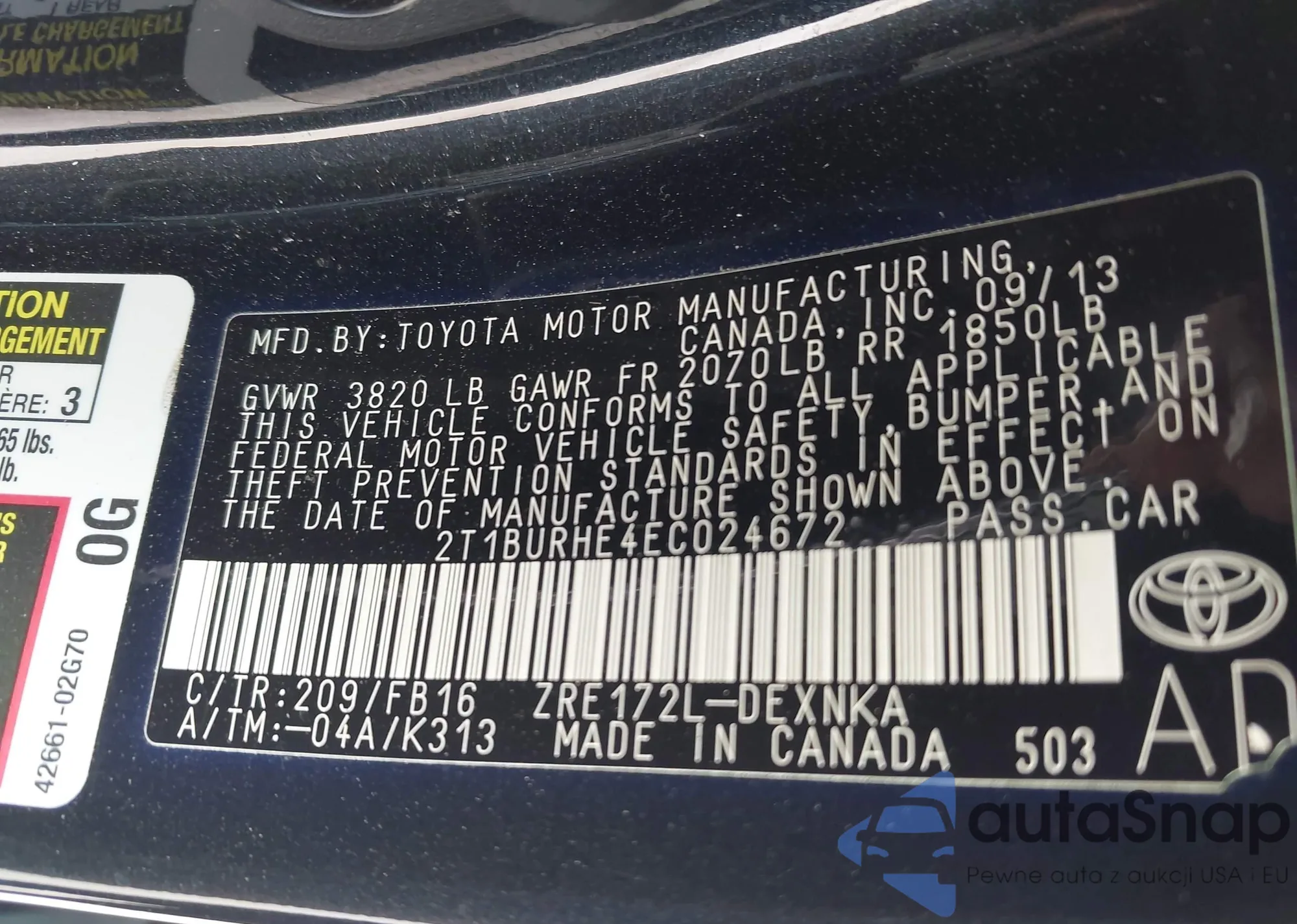 LOT: 43188387 VIN: JTDKDTB33J1603011