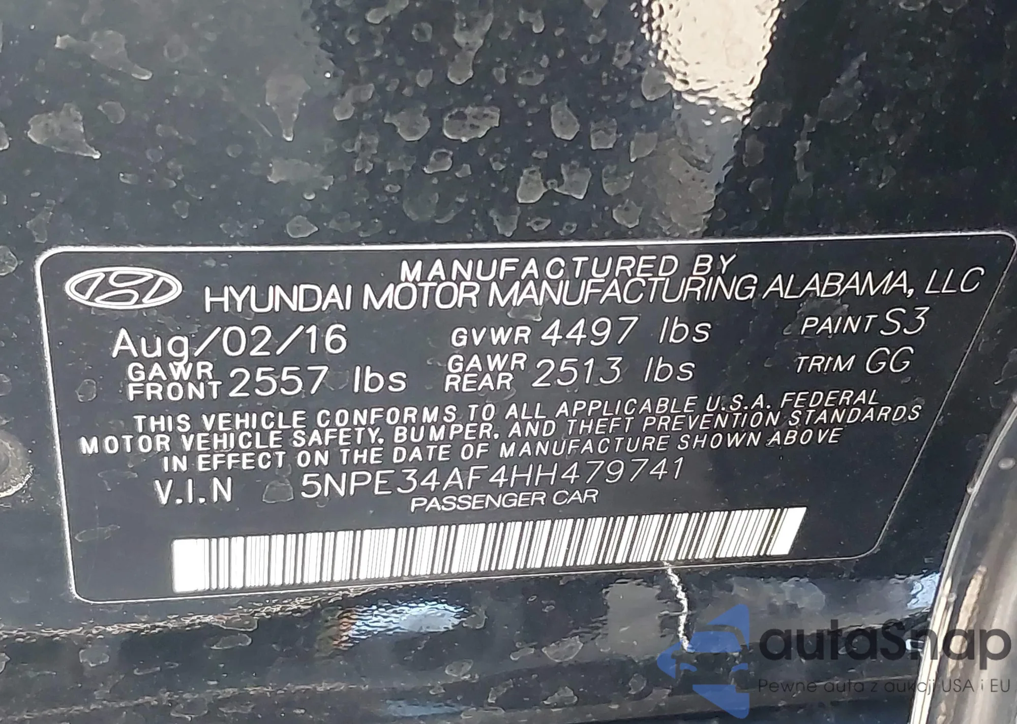 • VIN 5NPE34AF4HH479741