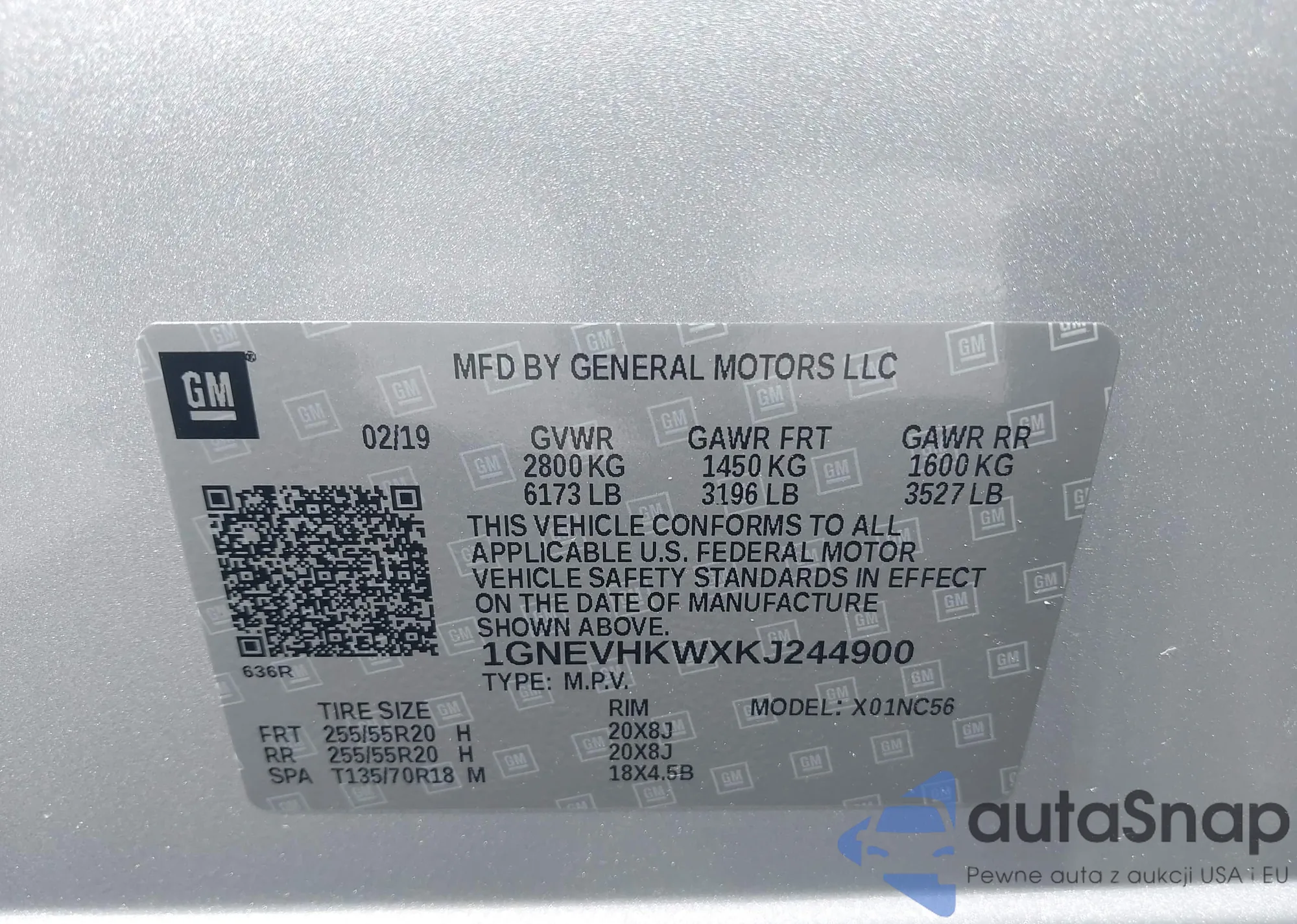 LOT: 43098537 VIN: 2GNAXUEV0K6112052