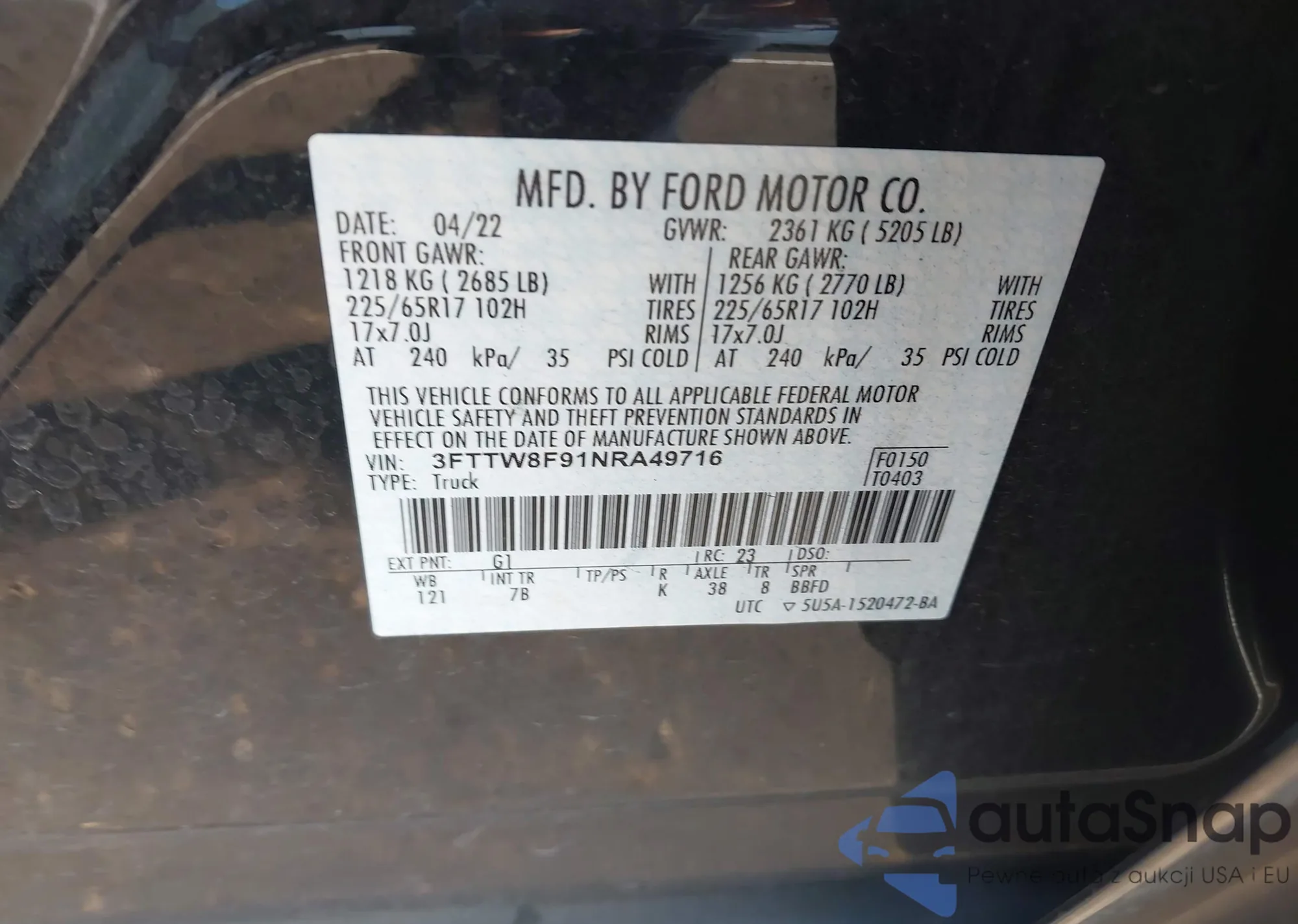 • VIN 3FTTW8F91NRA49716