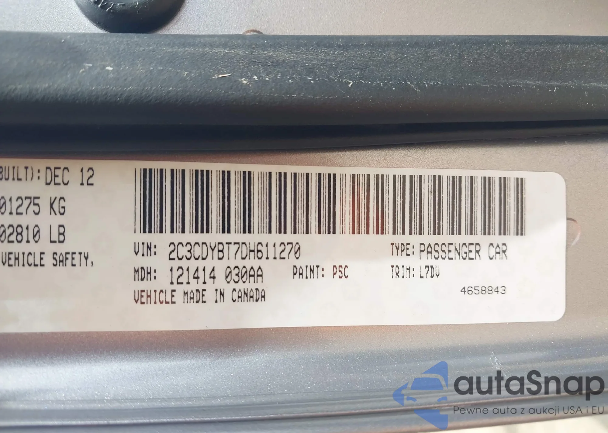 • VIN 2C3CDYBT7DH611270