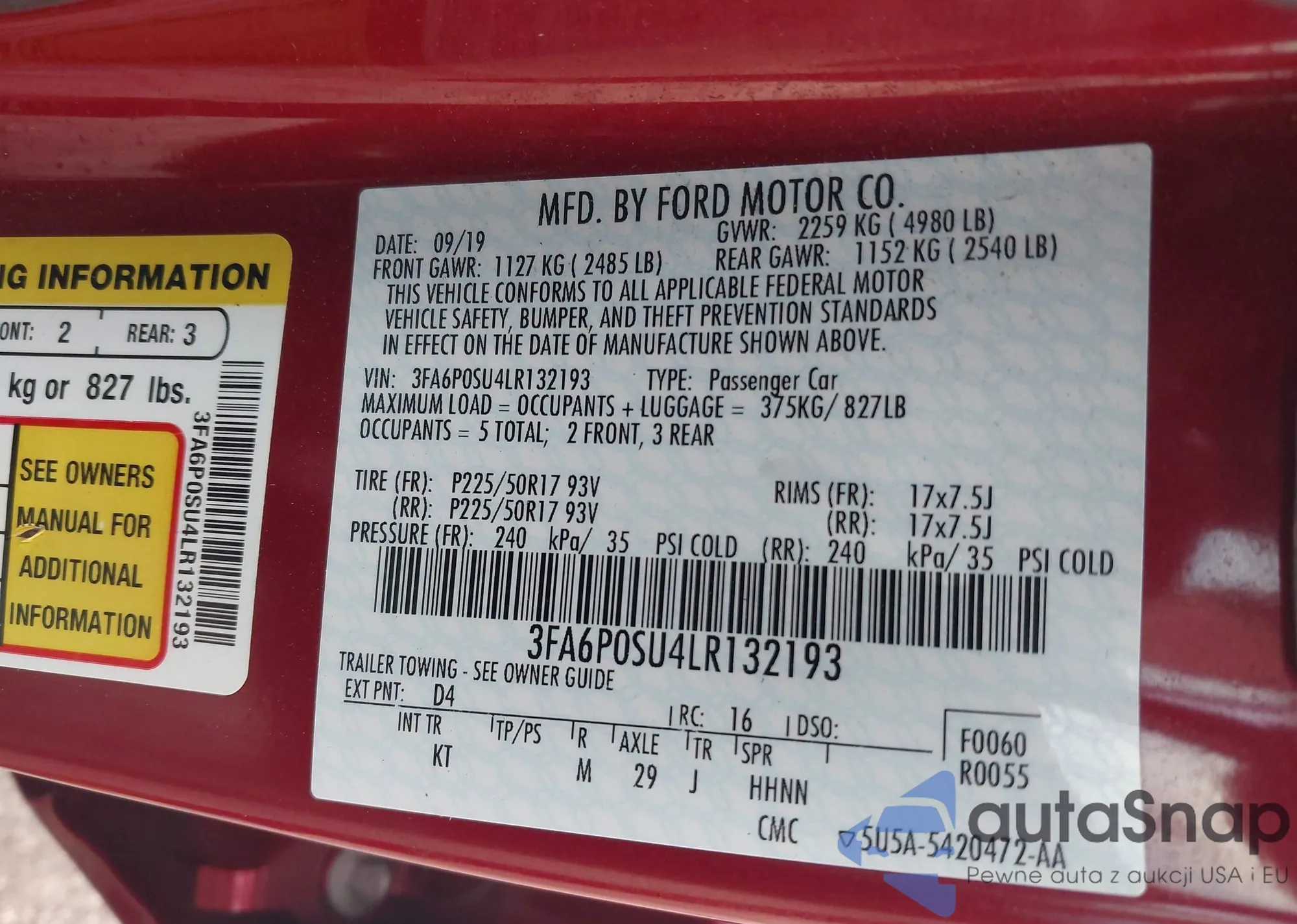 • VIN 3FA6P0SU4LR132193