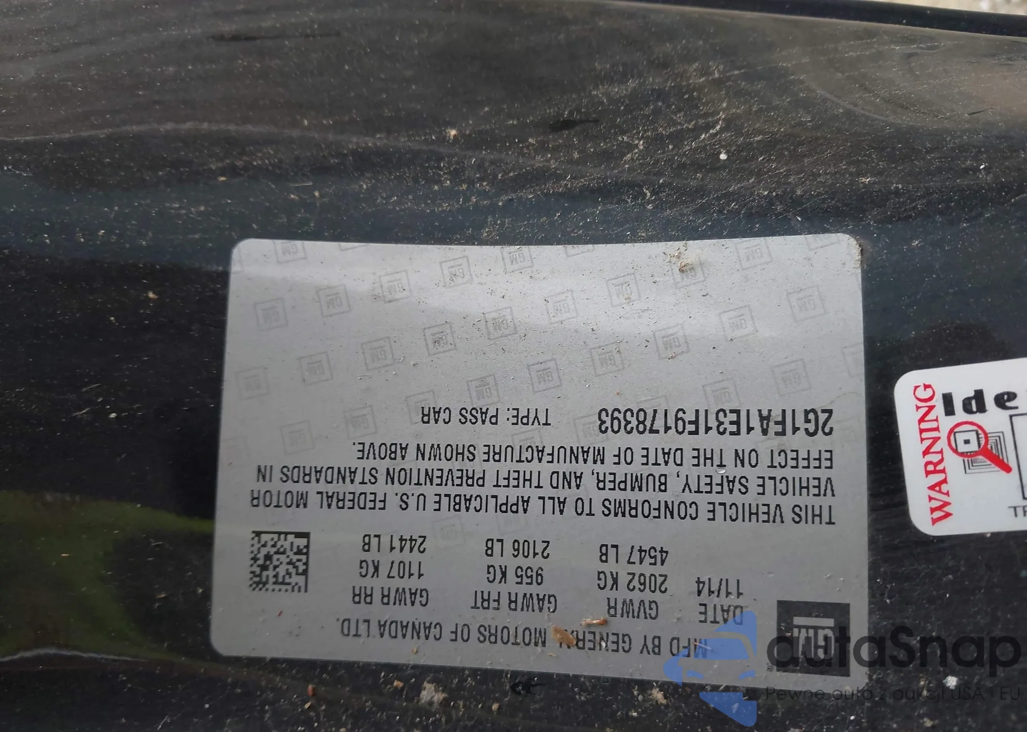 • VIN 2G1FA1E31F9178393