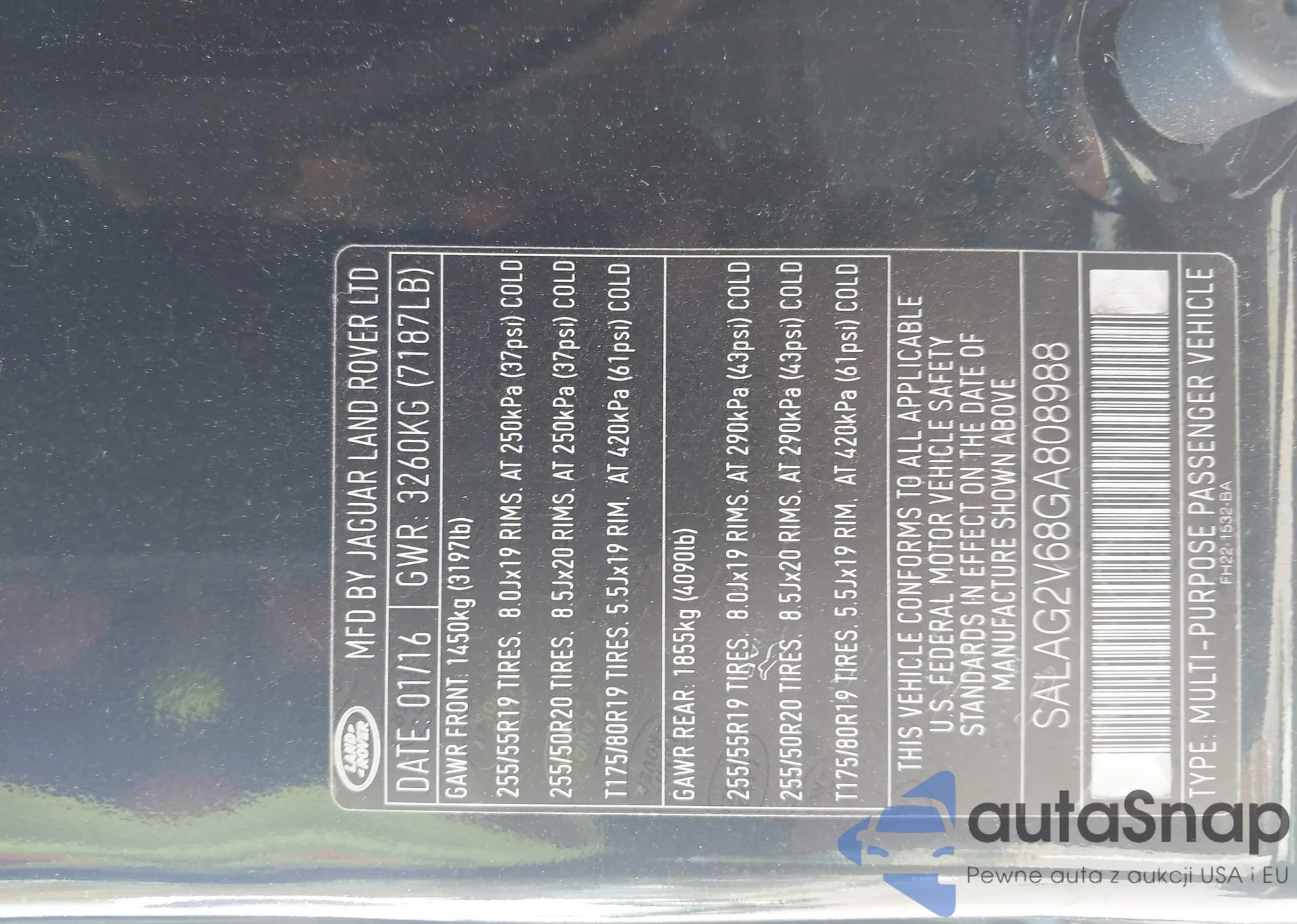 • VIN 5J6RW2H89MA011567
