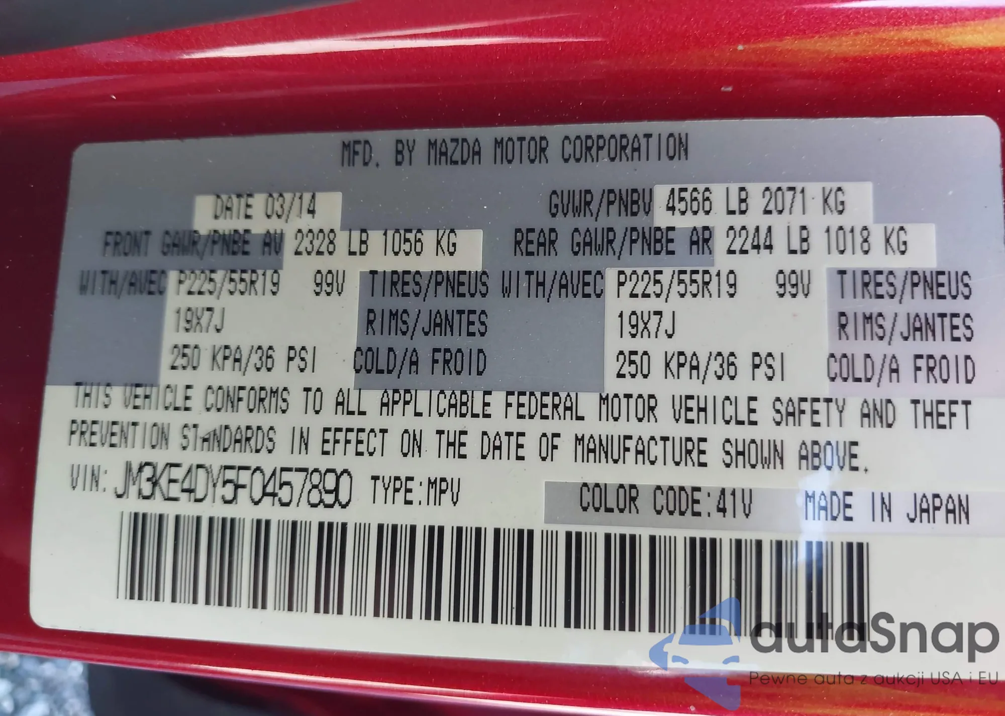 LOT: 43162362 VIN: JM3KE4DY5F0457890