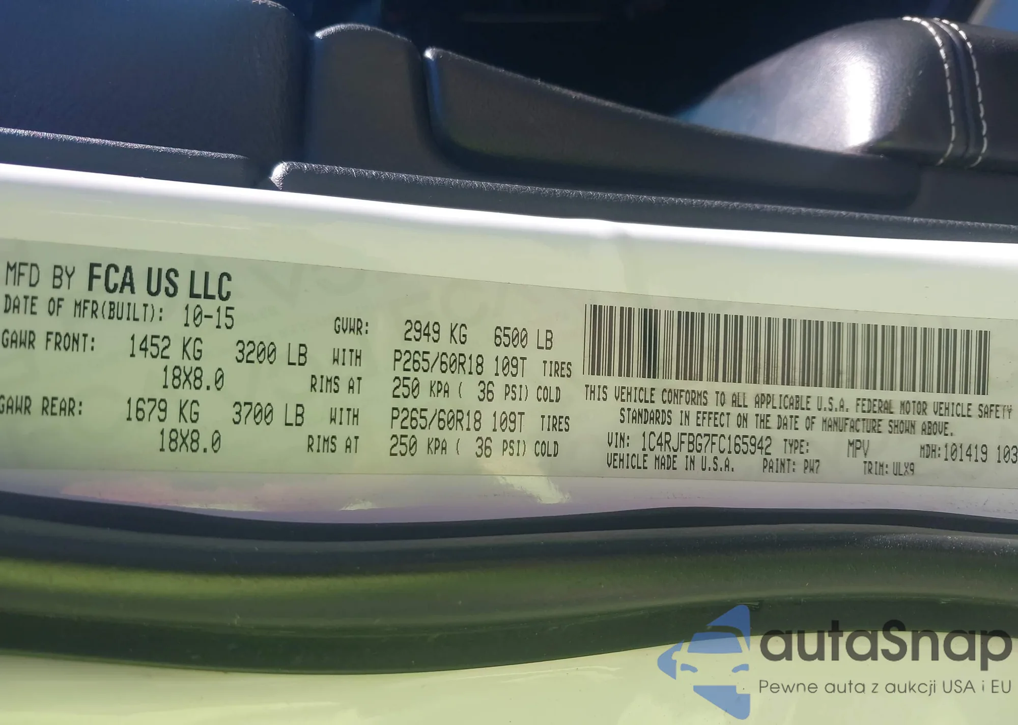 • VIN 1C4RJFBG7FC165942