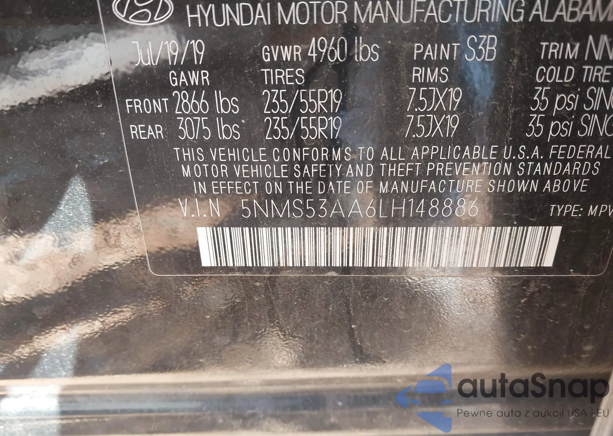 • VIN 5J6RS3H40SL013496