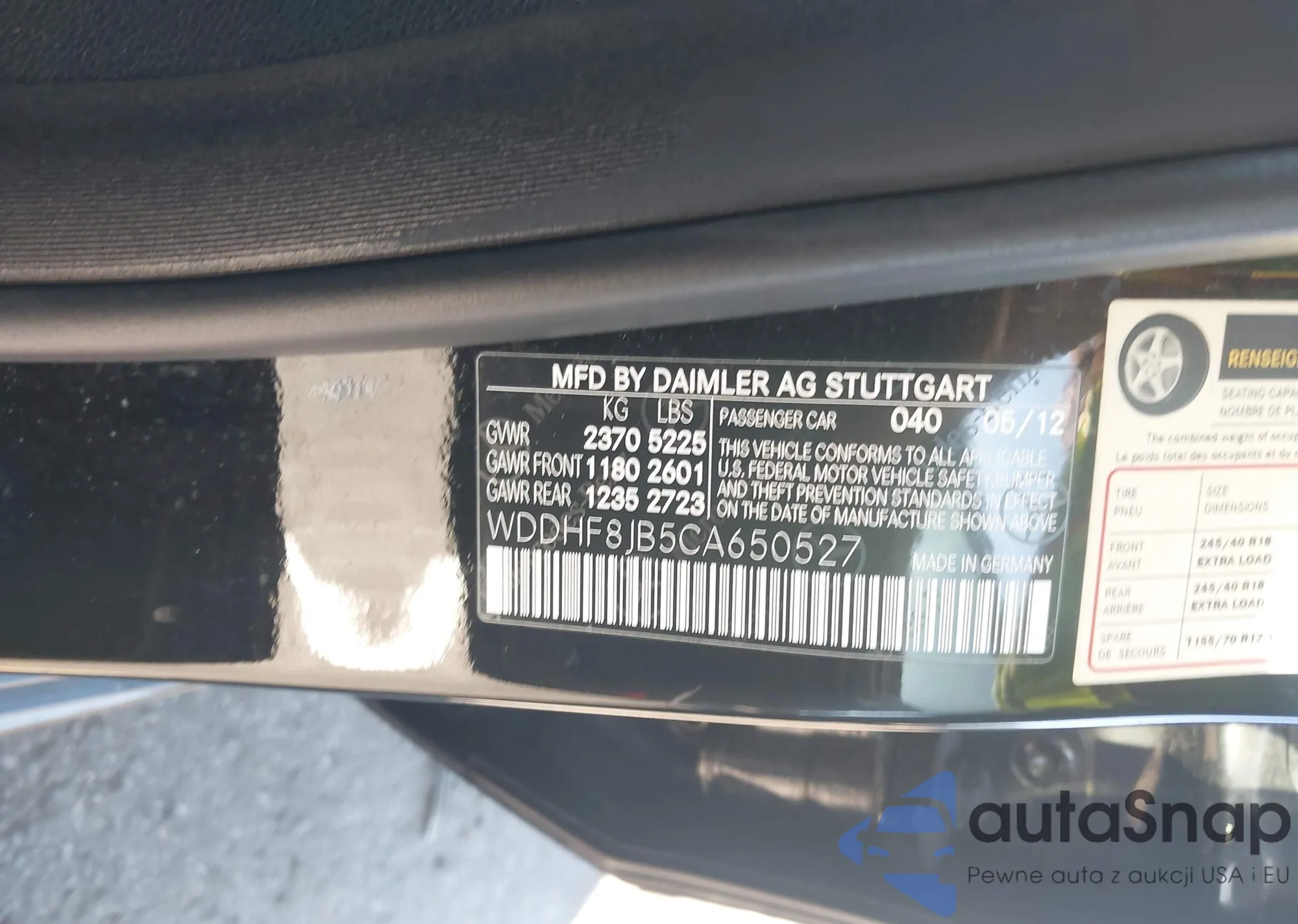LOT: 43075579 VIN: WDDHF8JB5CA650527