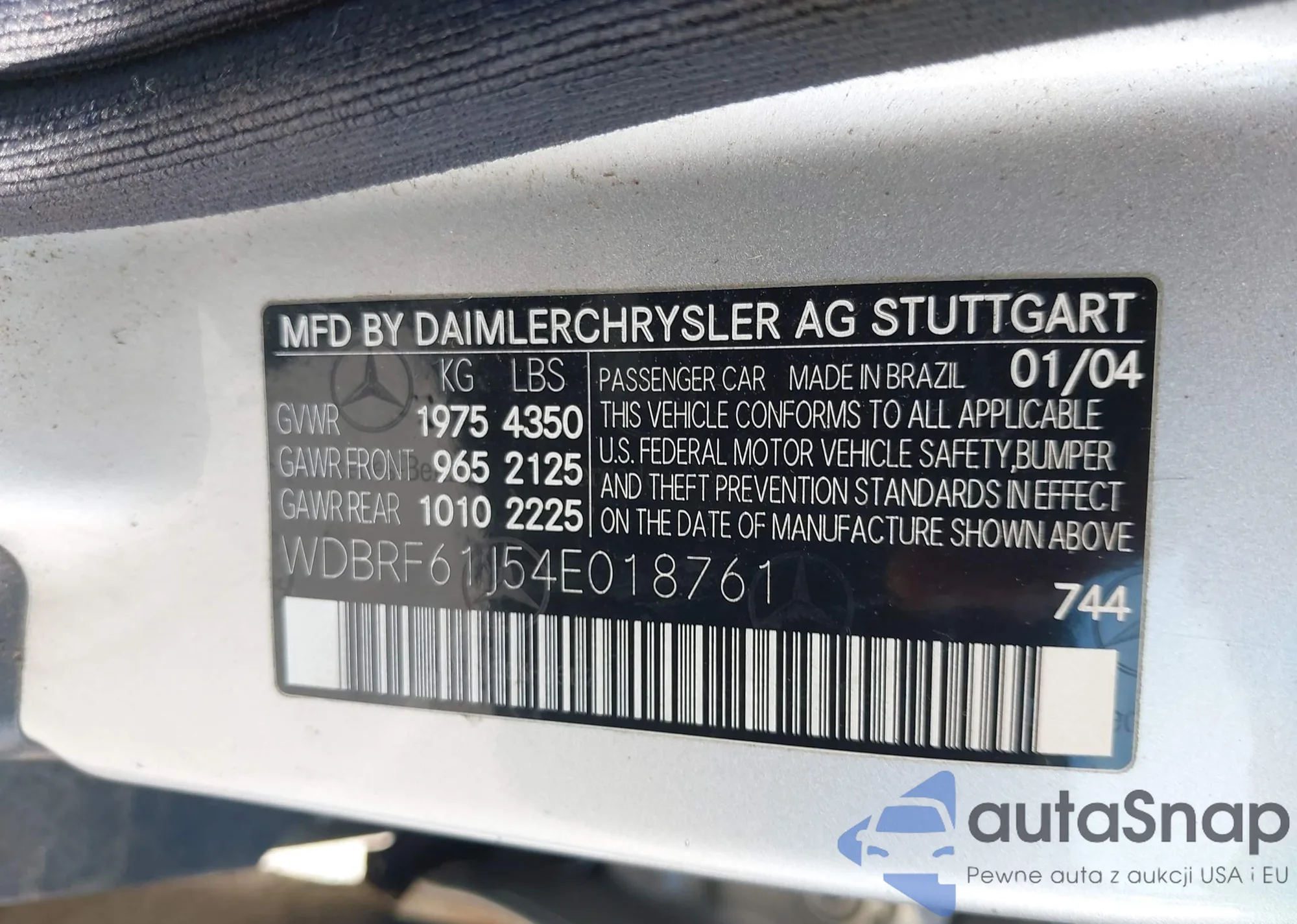 LOT: 43128202 VIN: WDBRF61J54E018761