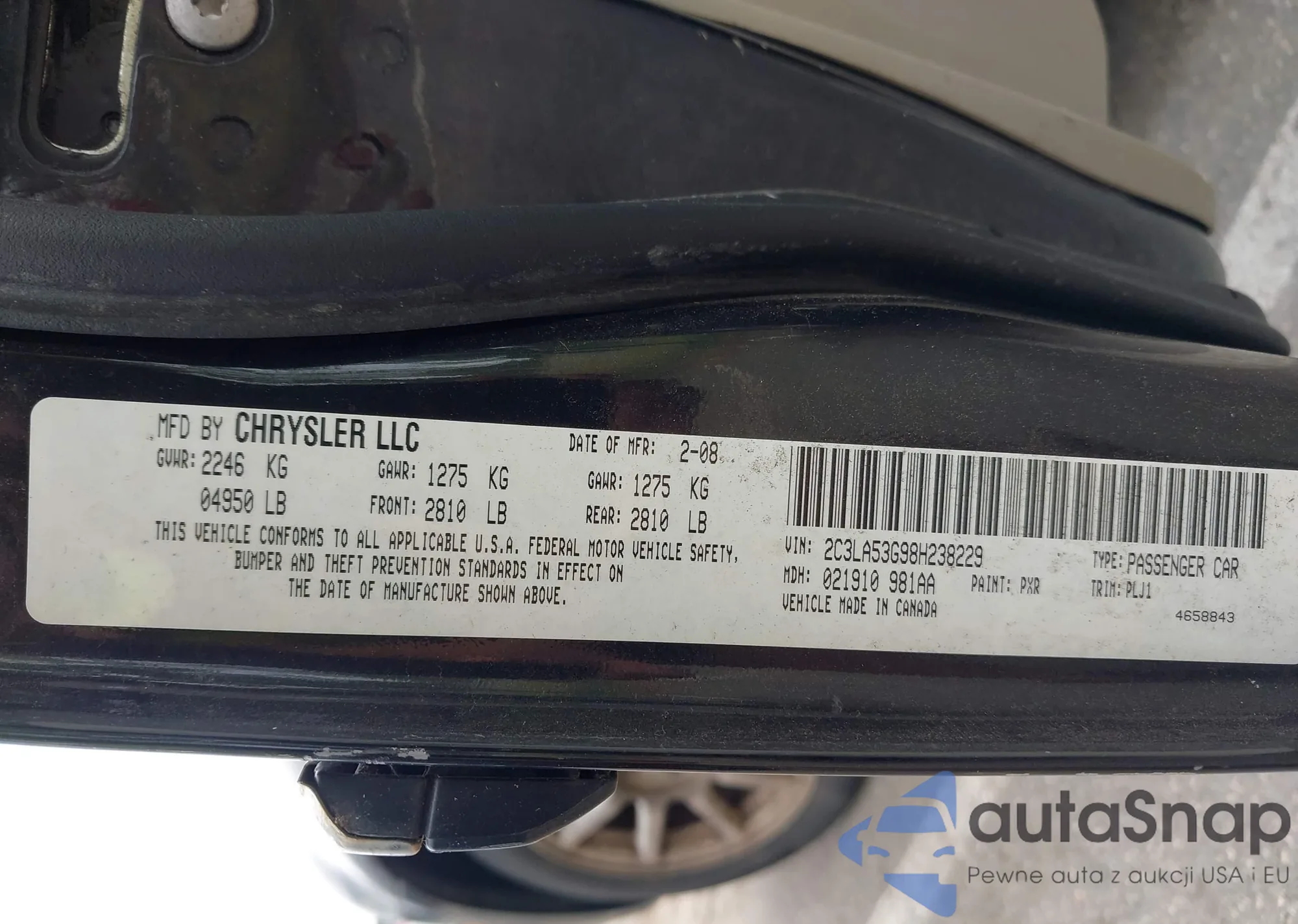 LOT: 43229598 VIN: 2C3LA53G98H238229