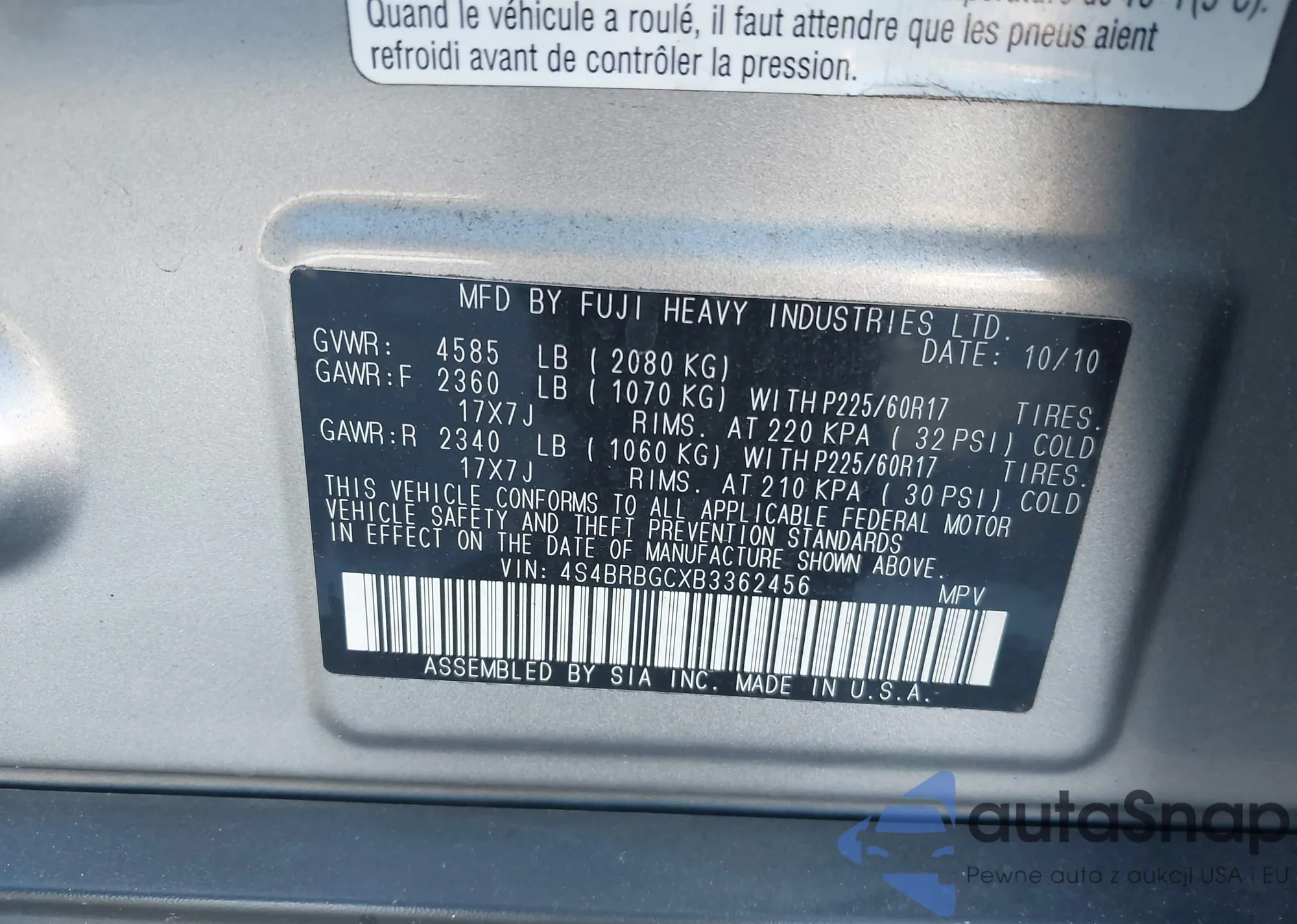 • VIN 4S4BRBGCXB3362456
