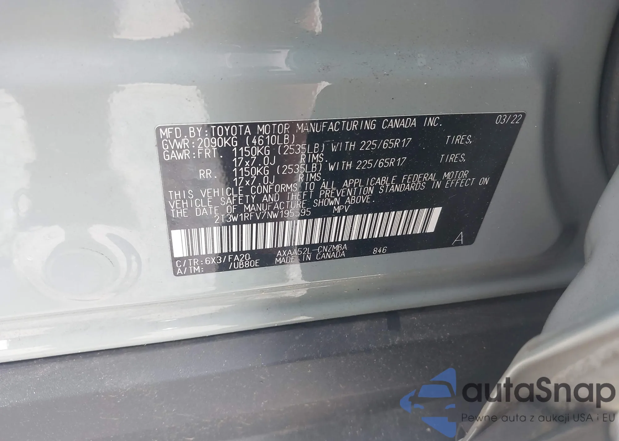 • VIN 2T3E6RFV9MW019837