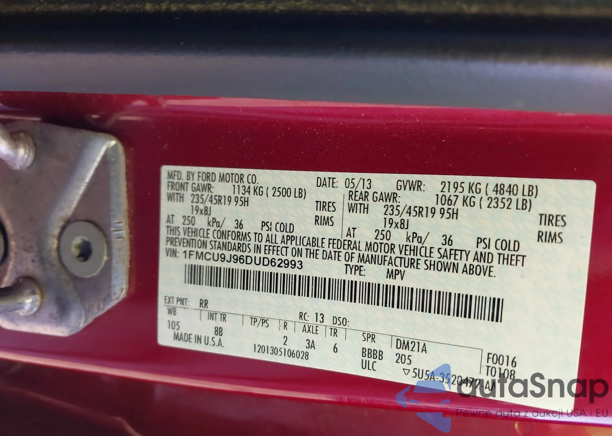 • VIN 1FMCU9J96DUD62993