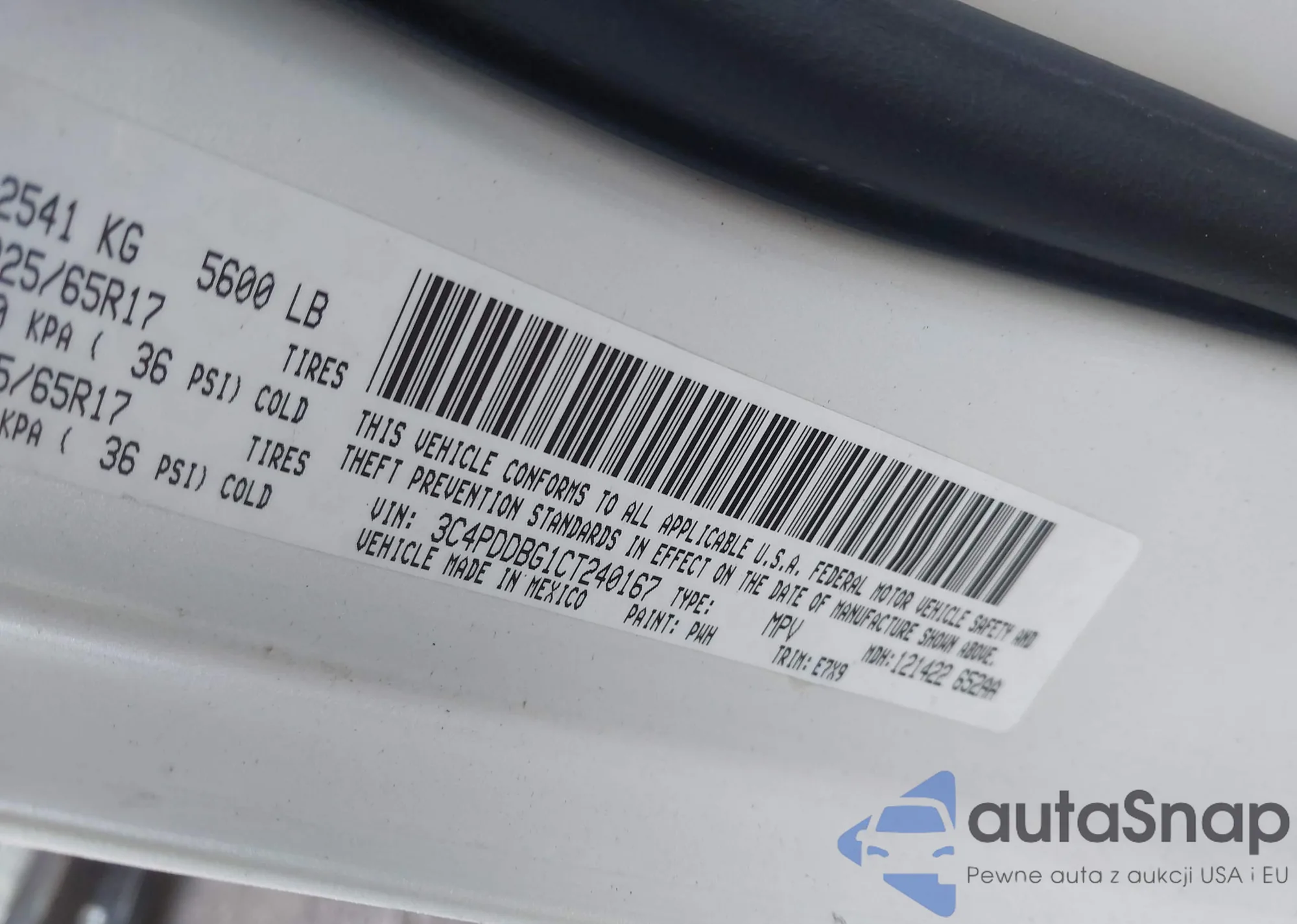 LOT: 43284174 VIN: 3C4PDDBG1CT240167