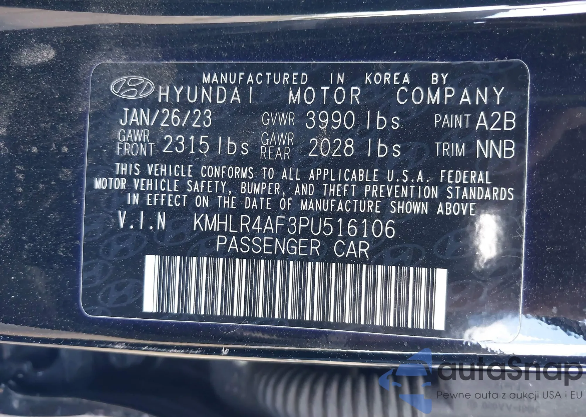 LOT: 43185316 VIN: KMHLS4AG4PU579888