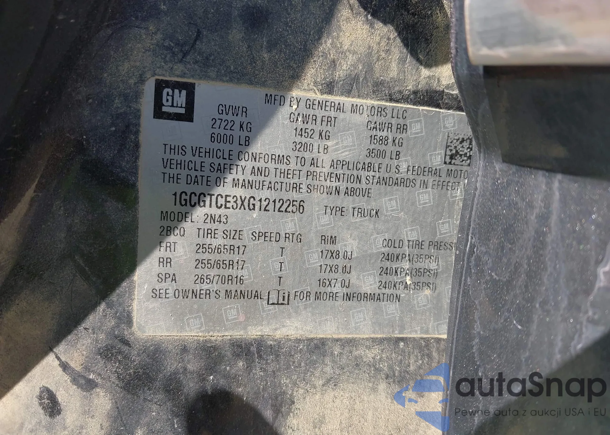 LOT: 43124813 VIN: 1GCGTCE3XG1212256