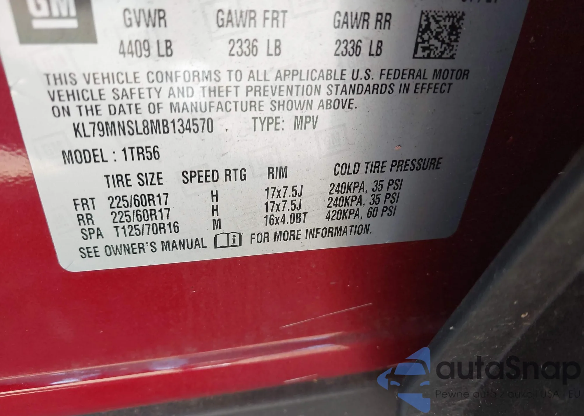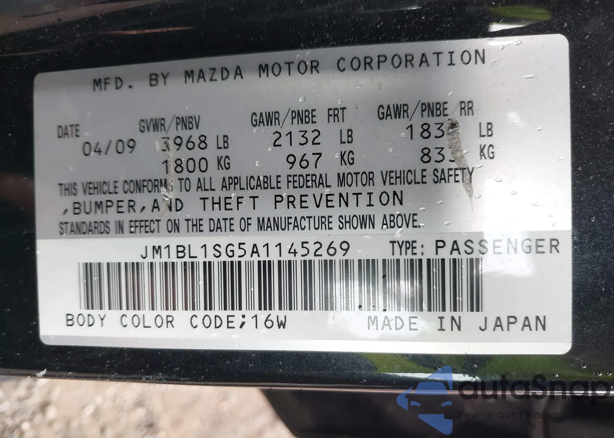 • VIN 5FNRL5H95EB108606