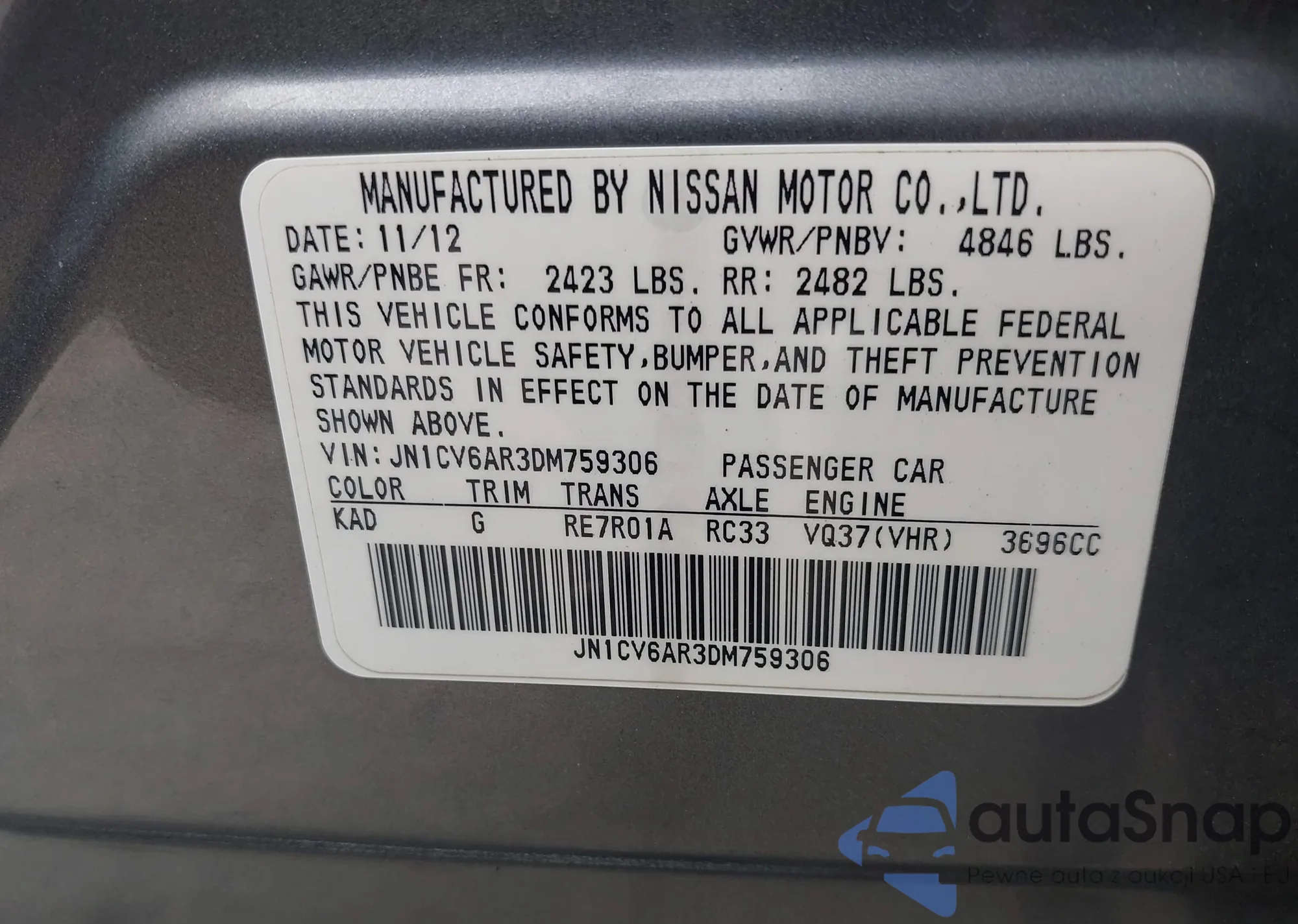 • VIN JN1CV6AR3DM759306