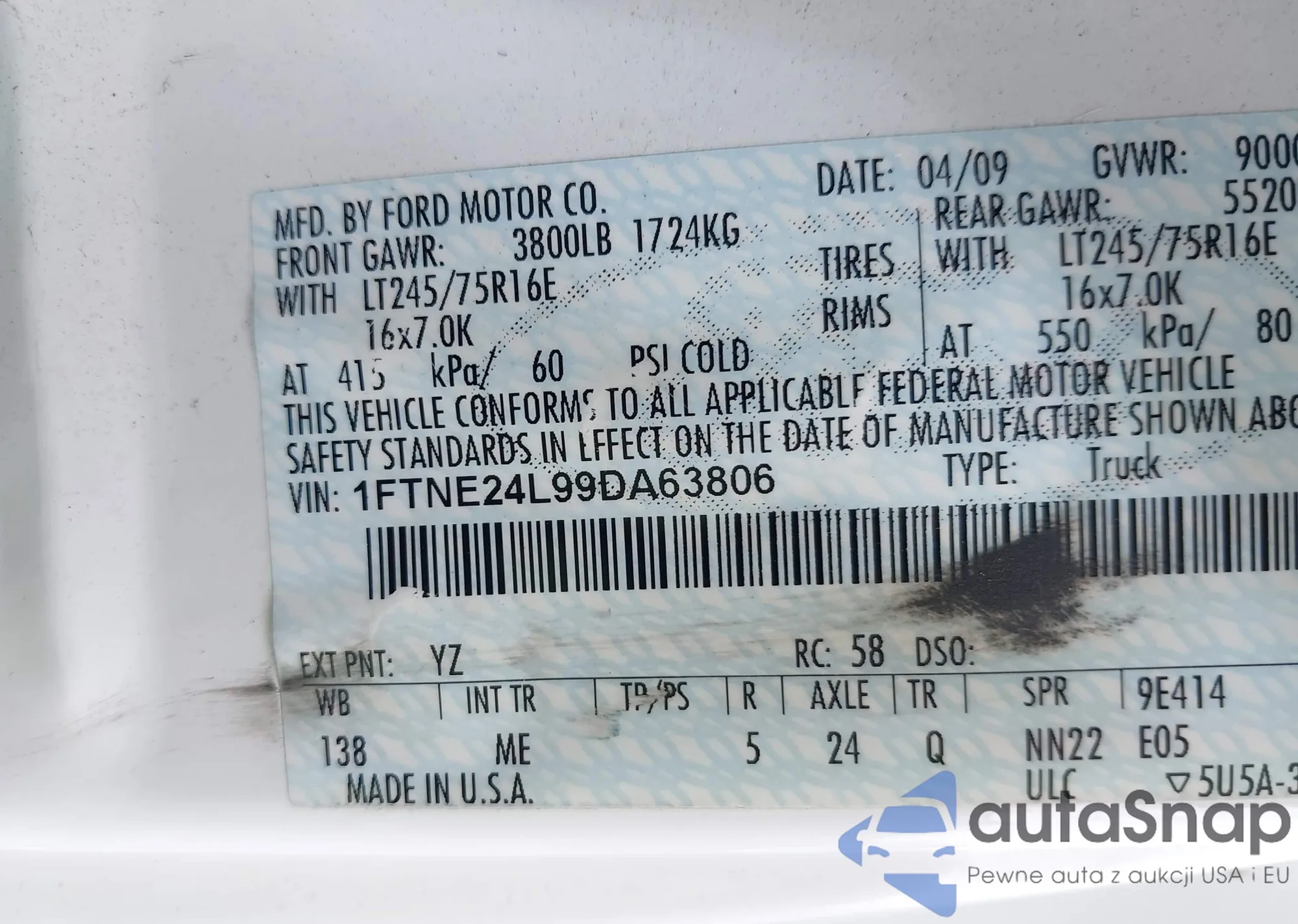 LOT: 43172179 VIN: 1FTNE24L99DA63806