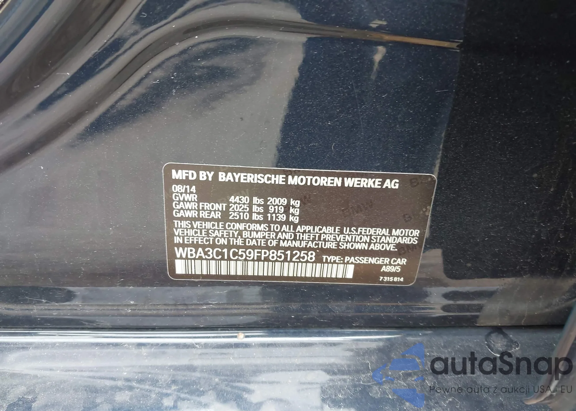LOT: 43224362 VIN: WBA3C1C59FP851258