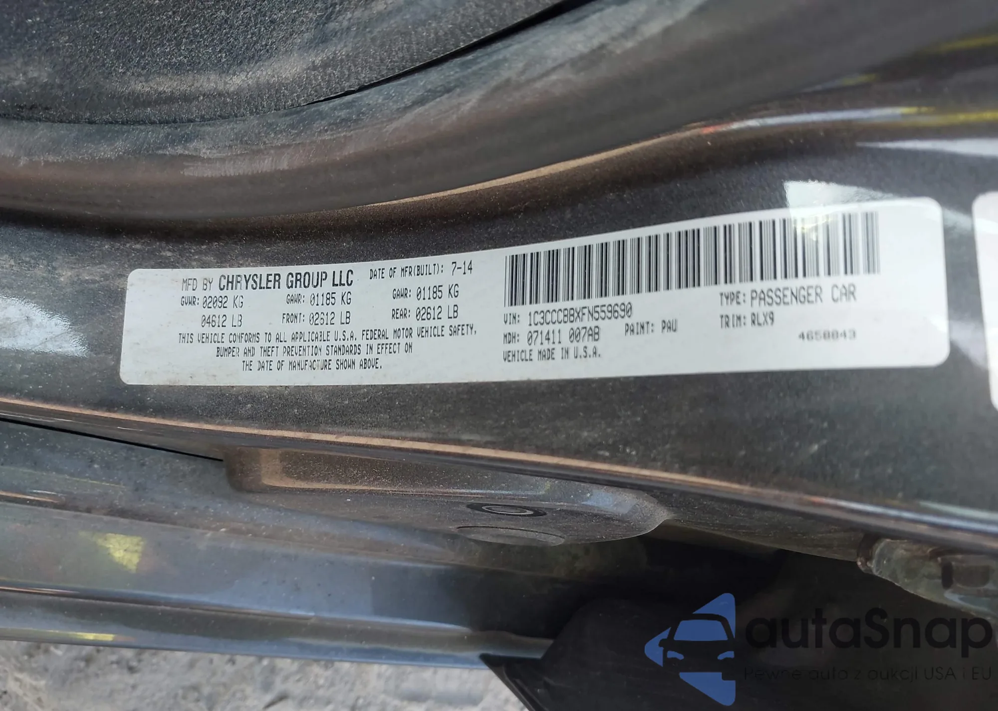 LOT: 43235773 VIN: 1C3CCCBBXFN559690