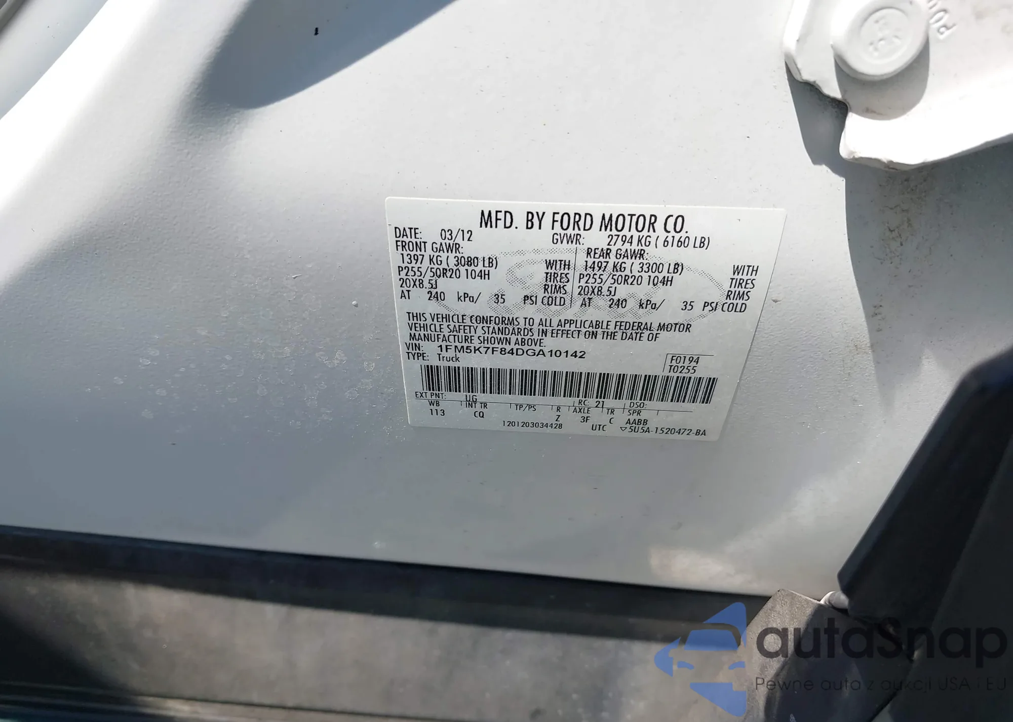 LOT: 43255253 VIN: 1FM5K7F84DGA10142