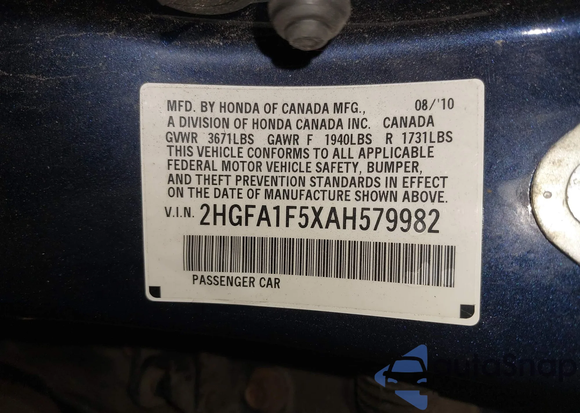 • VIN 2HGFA1F5XAH579982