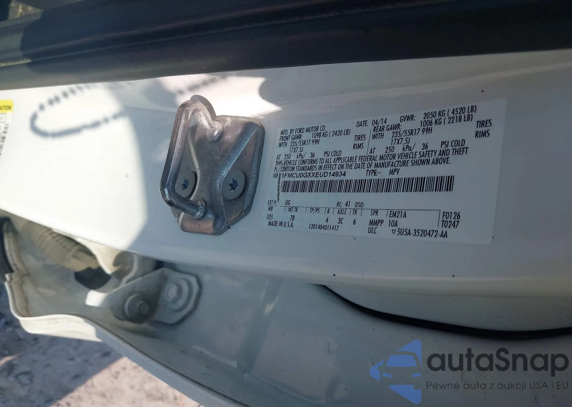 • VIN 1FMCU0GXXEUD14934