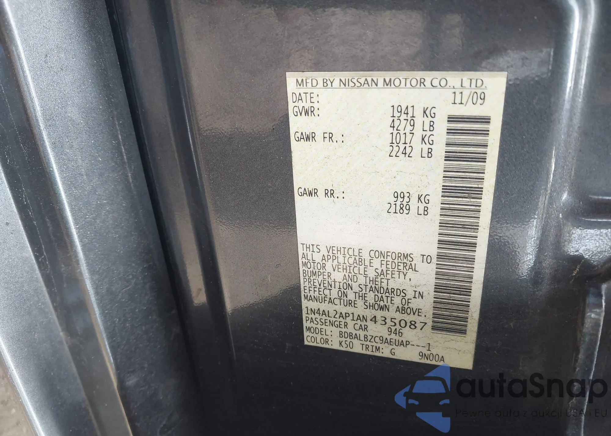 LOT: 43281003 VIN: 1N4AL2AP1AN435087
