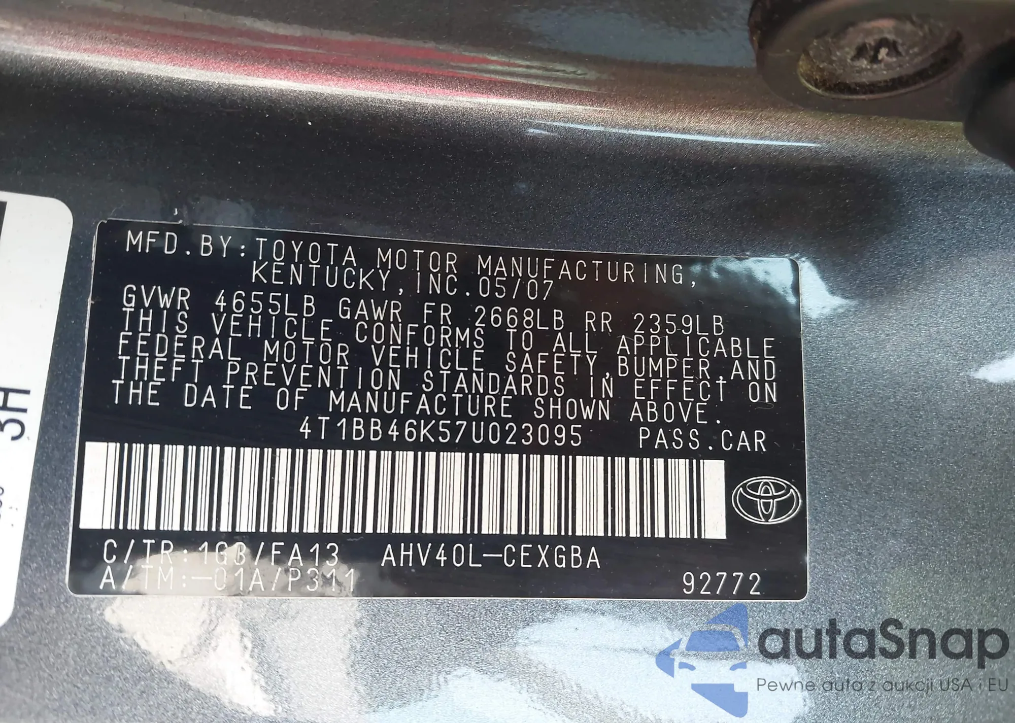 • VIN 4T1BB46K57U023095