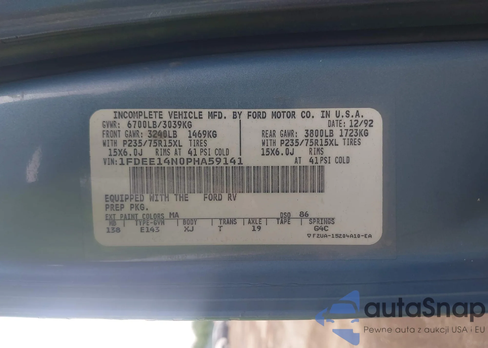 • VIN 1FDEE14N0PHA59141