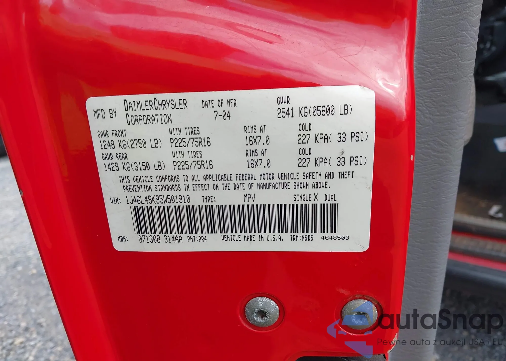 LOT: 43007163 VIN: 1J4GL48K95W501910