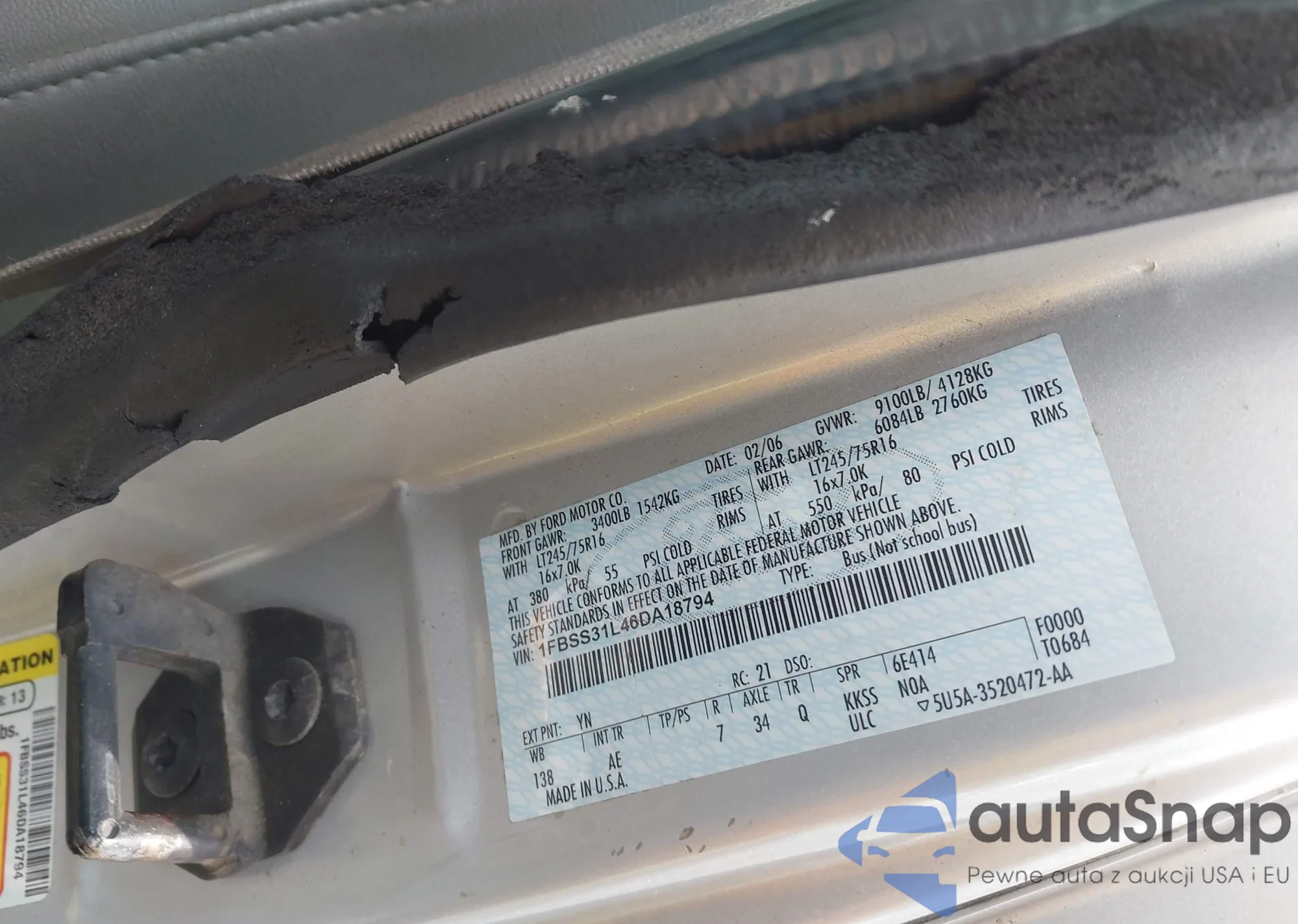 LOT: 43021607 VIN: 1FBSS31L46DA18794