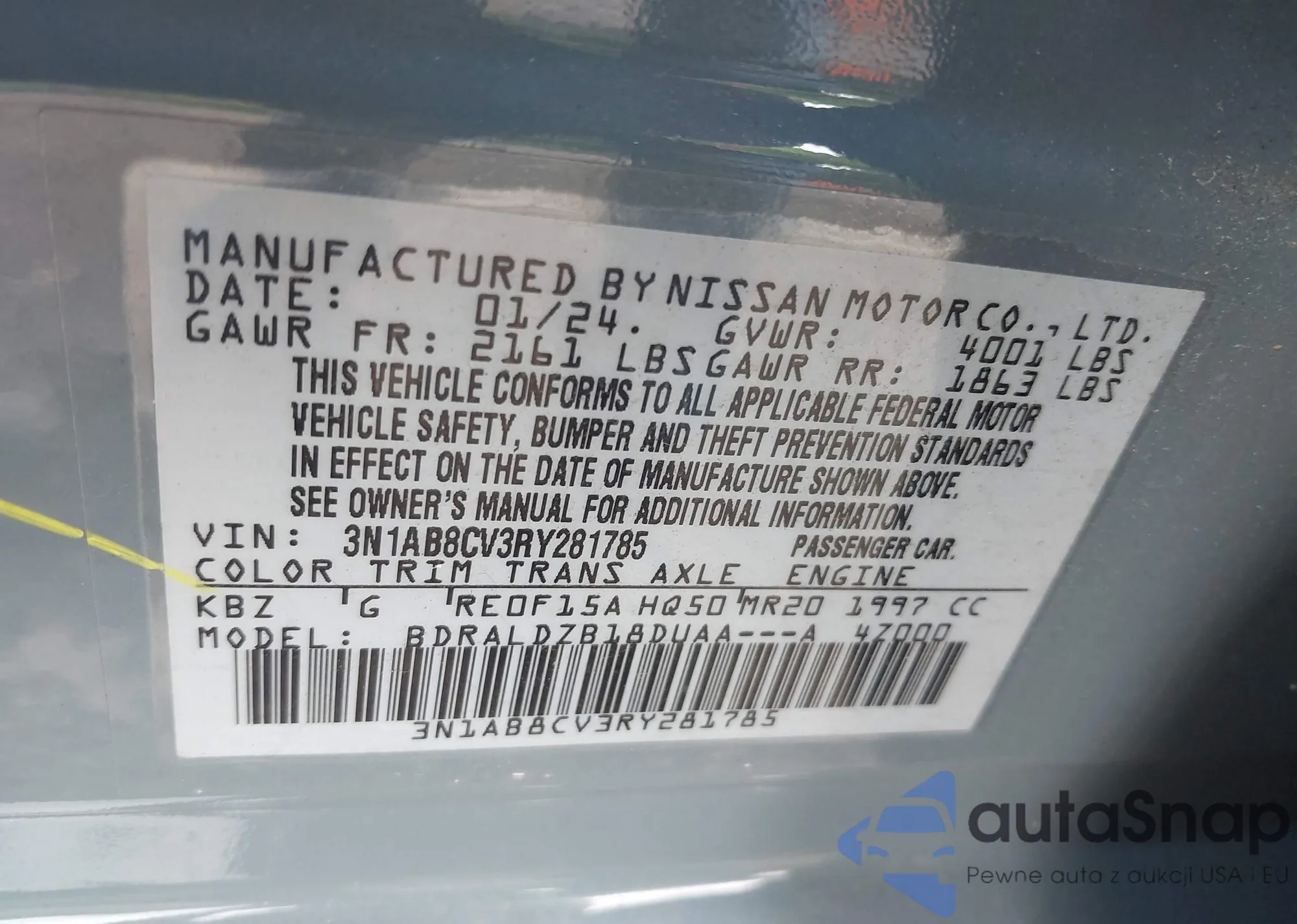 • VIN 3N1AB8CV3RY281785