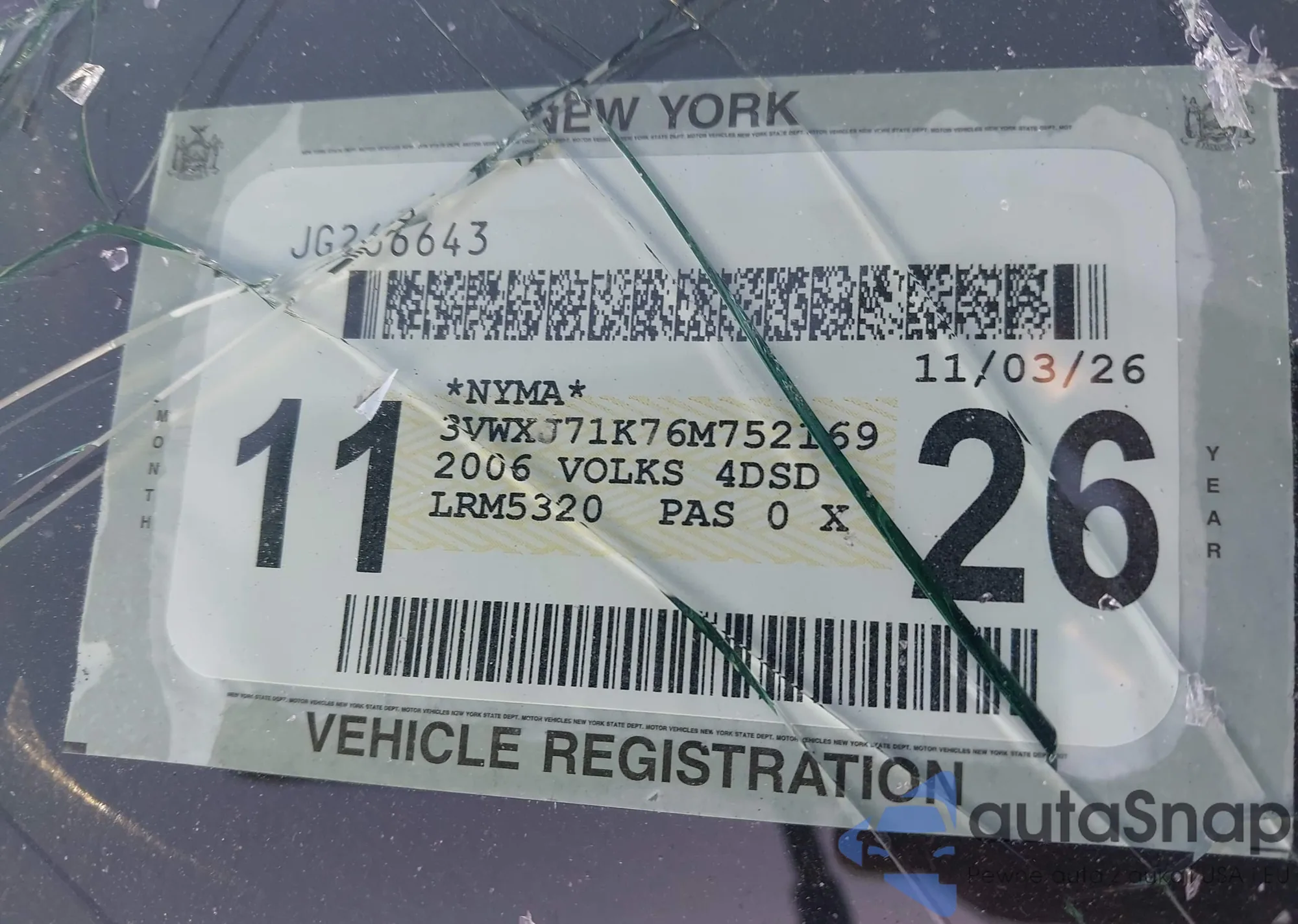 LOT: 43233207 VIN: 3VWXJ71K76M752169