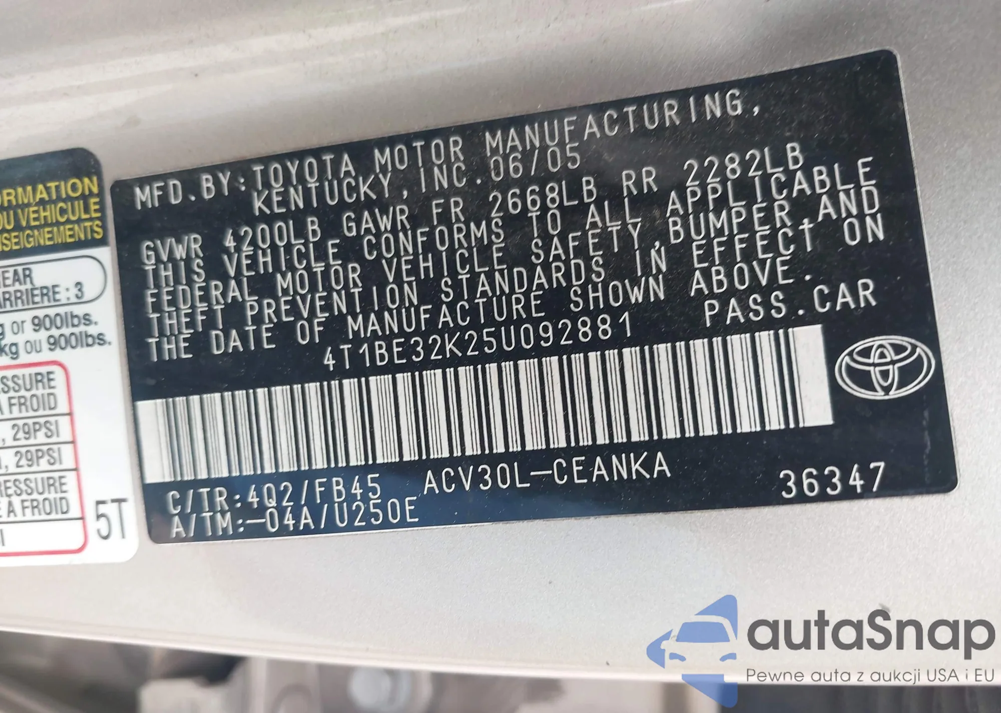 • VIN 4T1BE32K25U092881