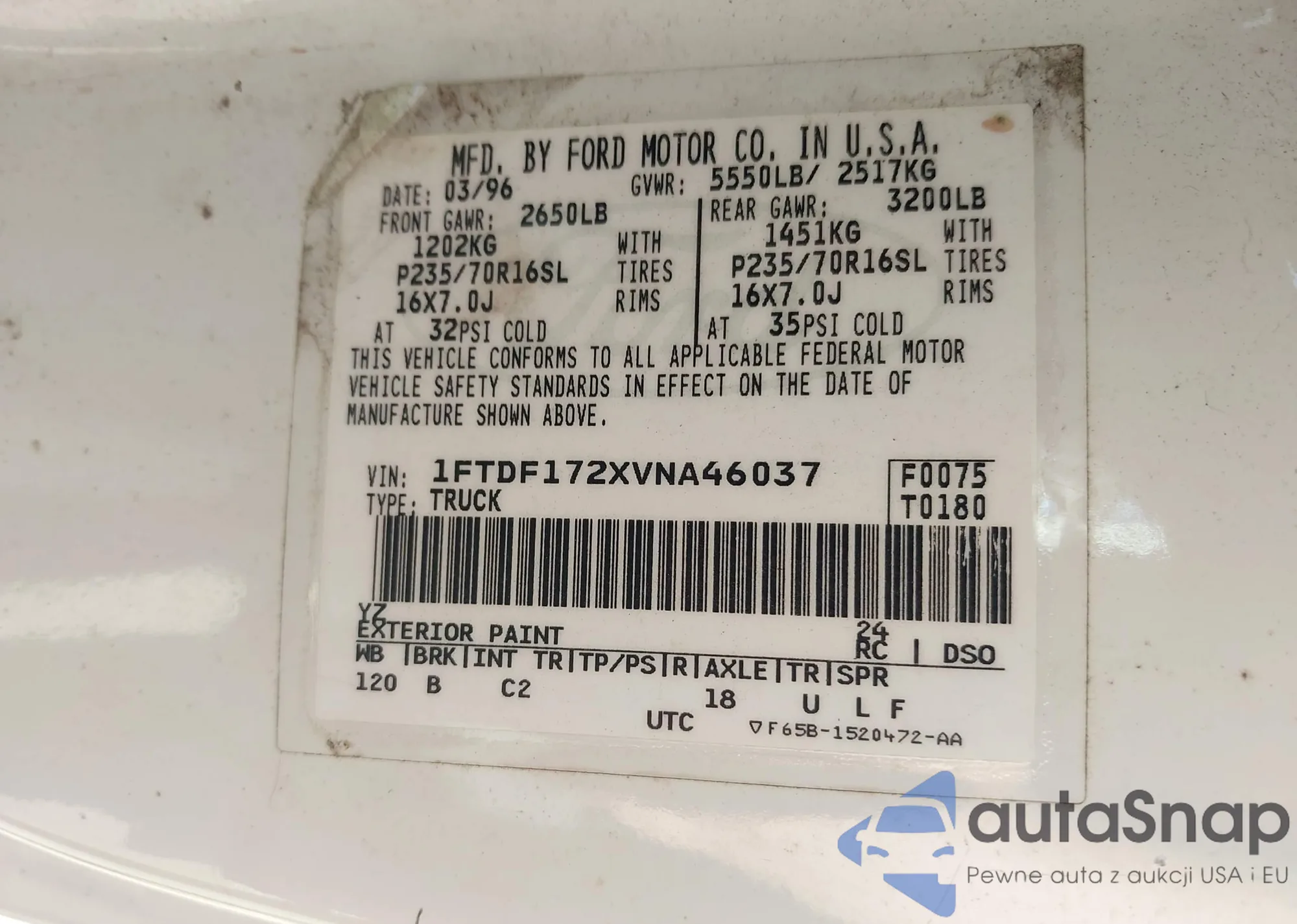 LOT: 43275049 VIN: 1FTDF172XVNA46037
