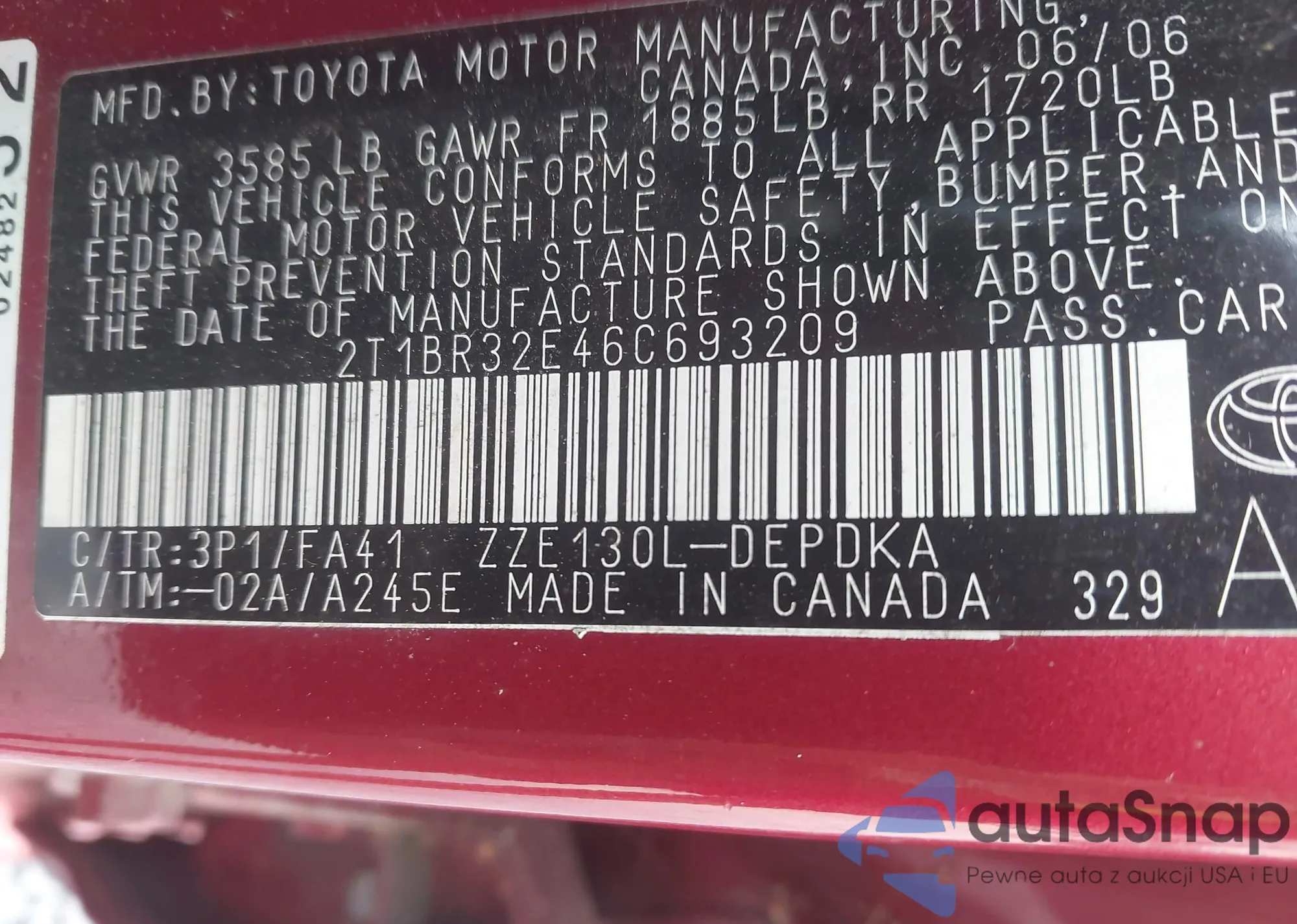 • VIN 2T1BR32E46C693209