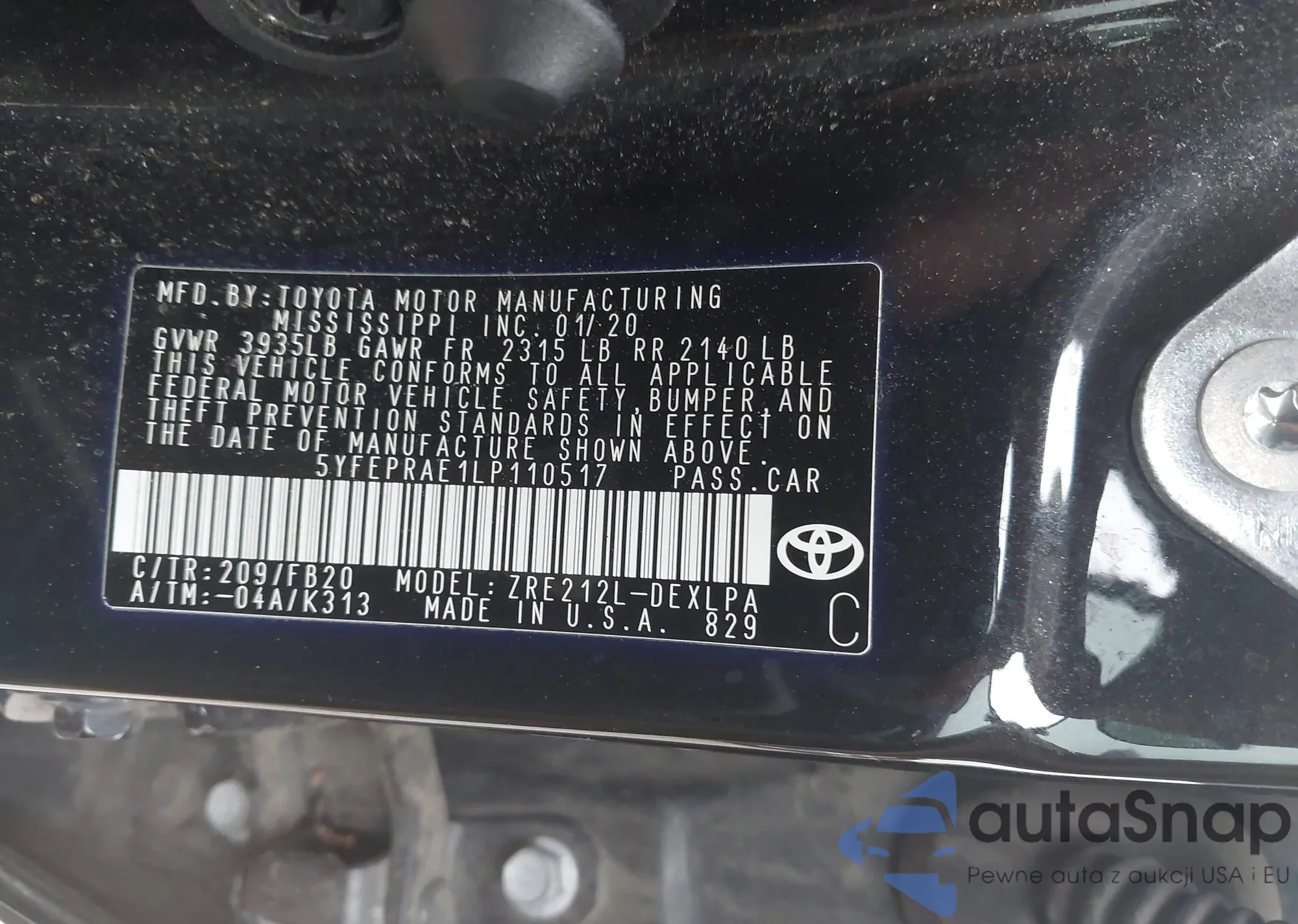 LOT: 43007526 VIN: 5YFEPRAE1LP110517