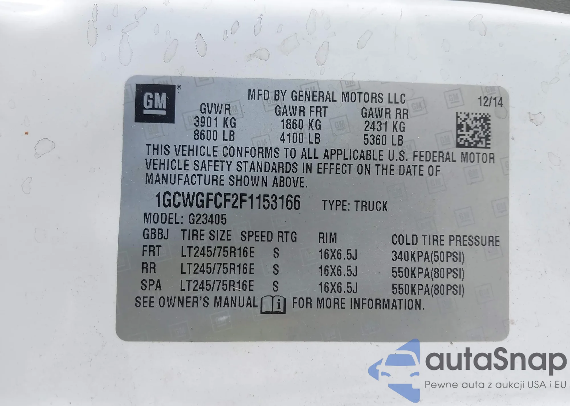 LOT: 43089979 VIN: 1GCWGFCF2F1153166