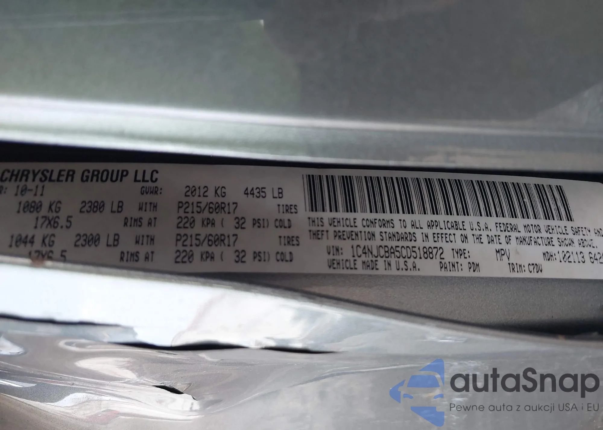 LOT: 43159996 VIN: JF1GJAC67CH028987