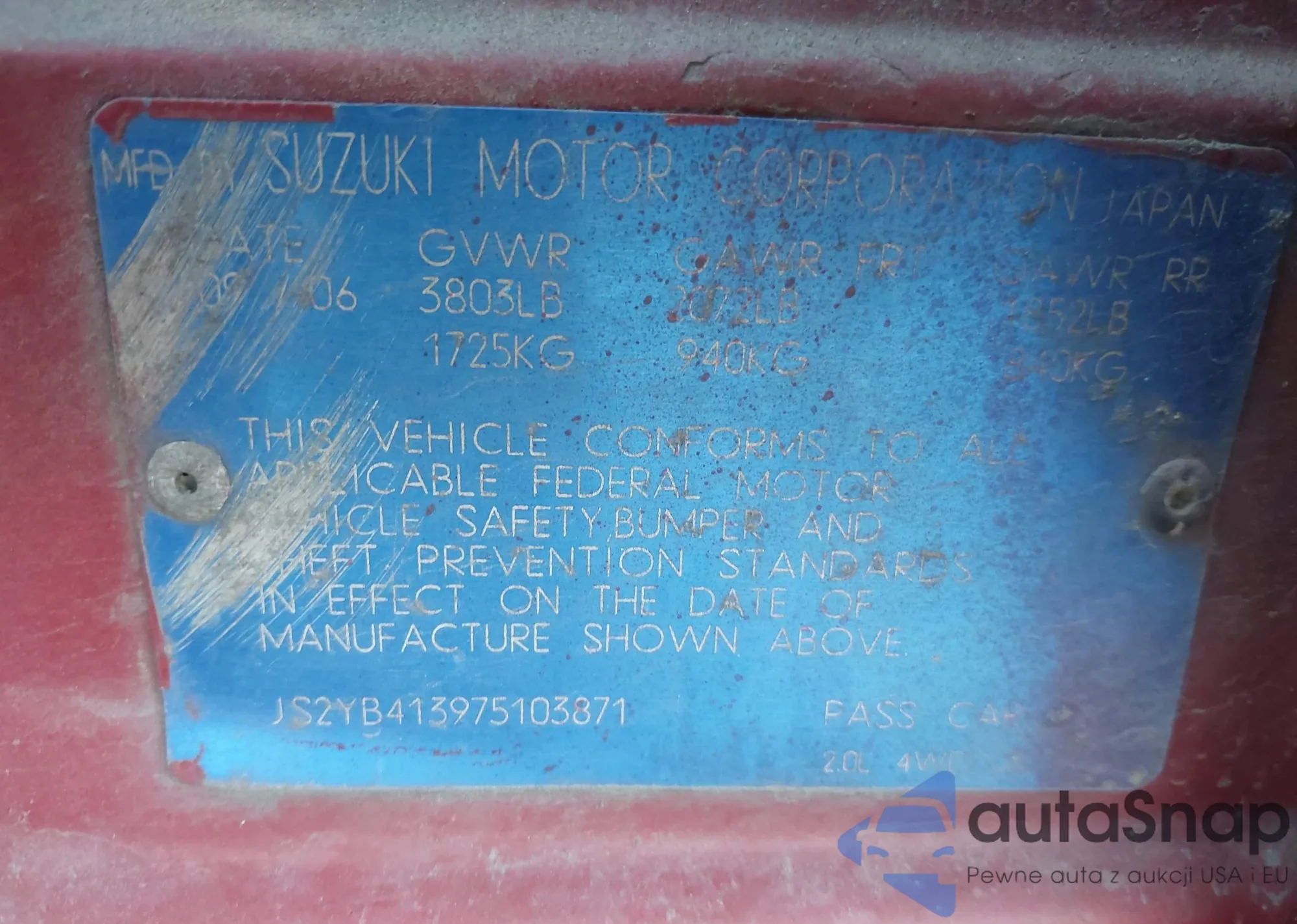 • VIN JS2YB413975103871