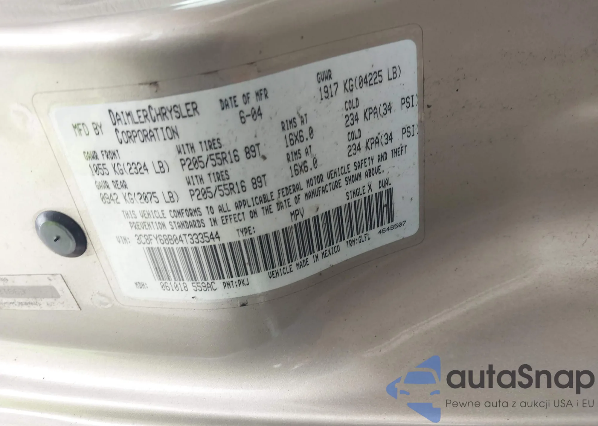 LOT: 43276995 VIN: 3C8FY68B04T333544